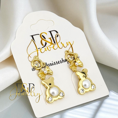14K BEAR/PEARL DESIGN STUD SET EARRING E956