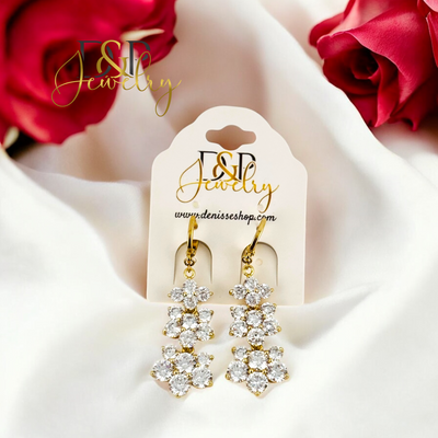 14K ELEGANT LONG FLOWER EARRING E894