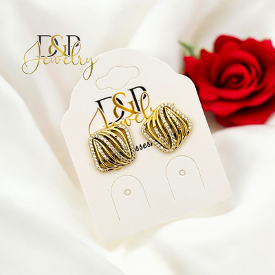 Beautiful 14K laminated gold Earrings luxury Design along with white Zirconia stones. Hypoallergenic and very Comfortable!