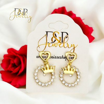 14K FANCY HEART CROWN DESIGN EARRING E884