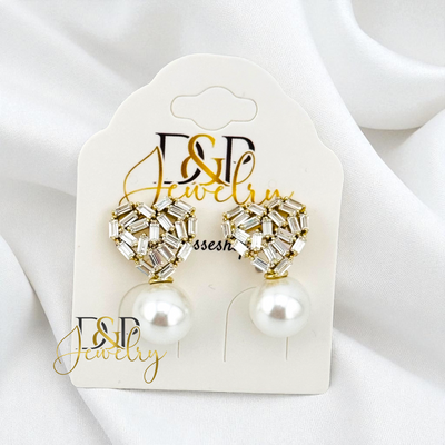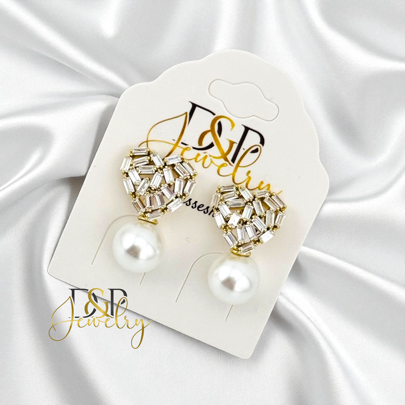 14K GOLD/ PEARL HEART STUD EARRING E990