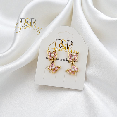 14K GOLD/ PINK DOUBLE BUTTERFLY STUD EARRING E992