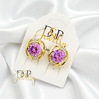 14K GOLD/PINK STONE FANCY HUGGIE EARRING E996