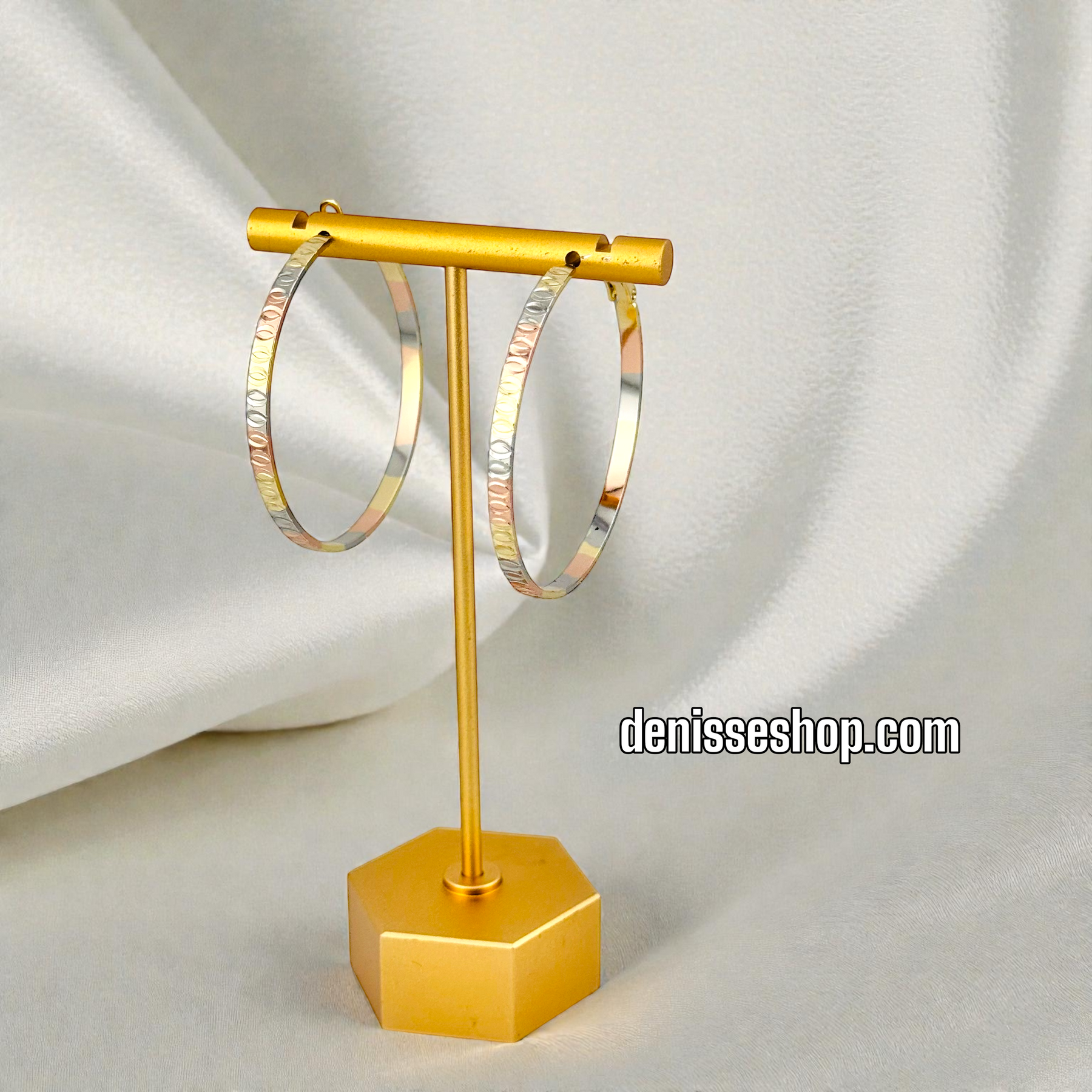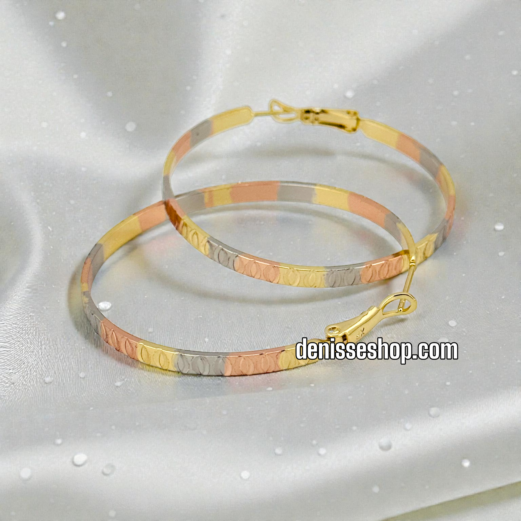 14K GOLD PLATED TRICOLOR 50MM DESIGN HOOP EARRING HP956