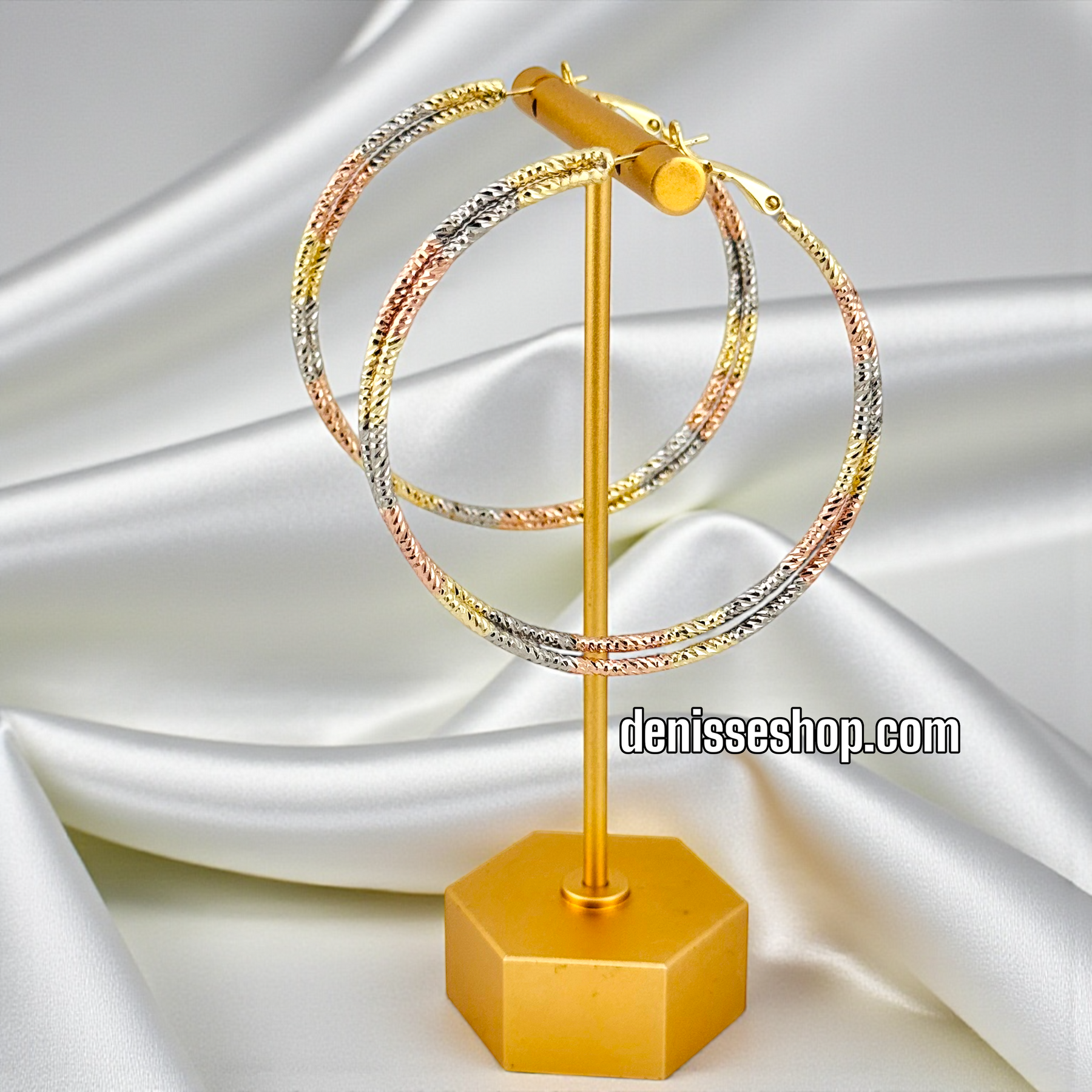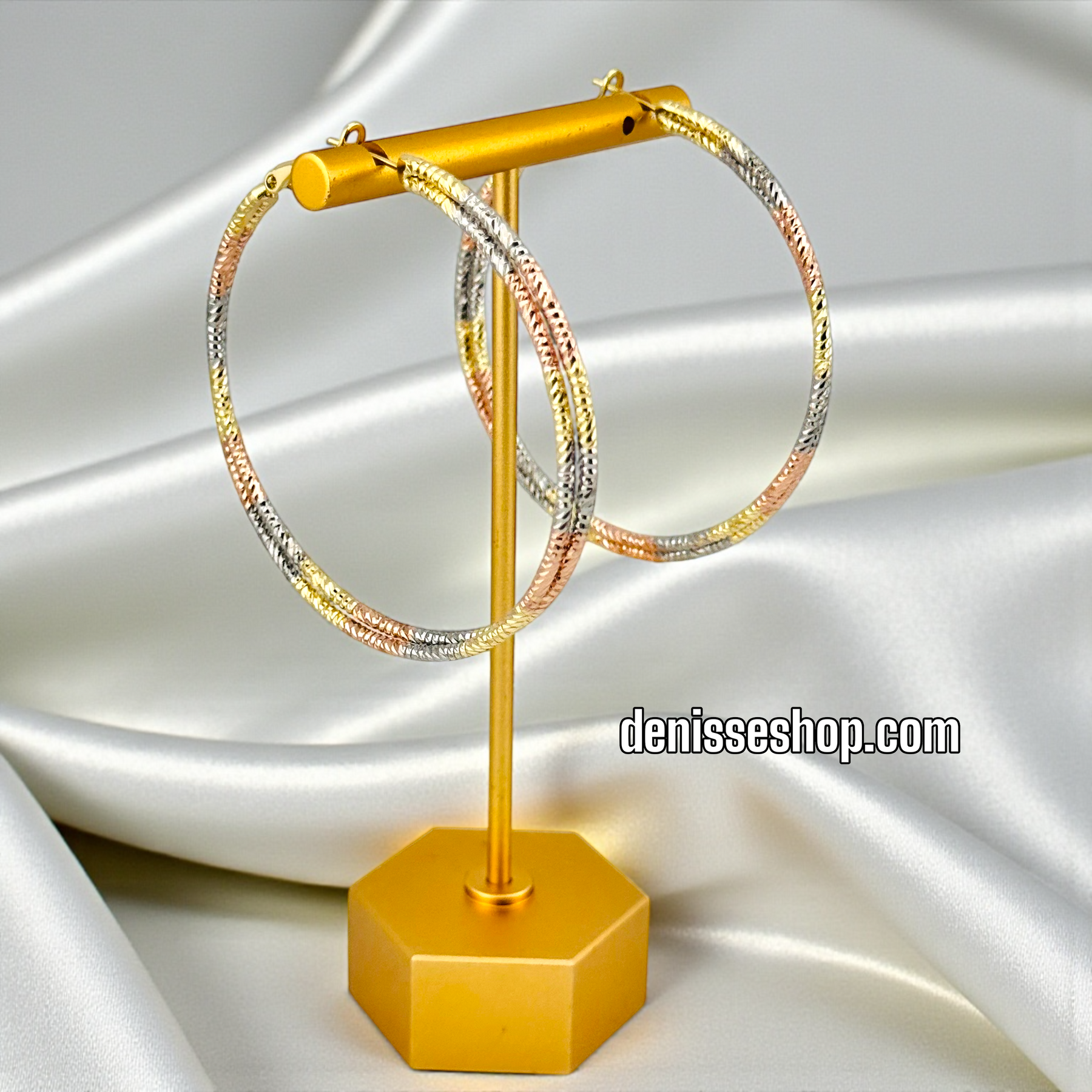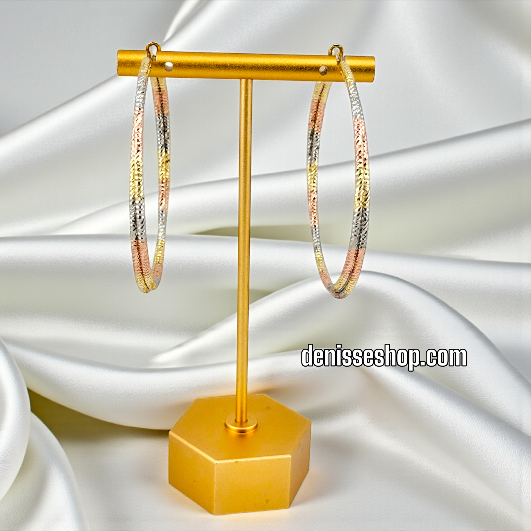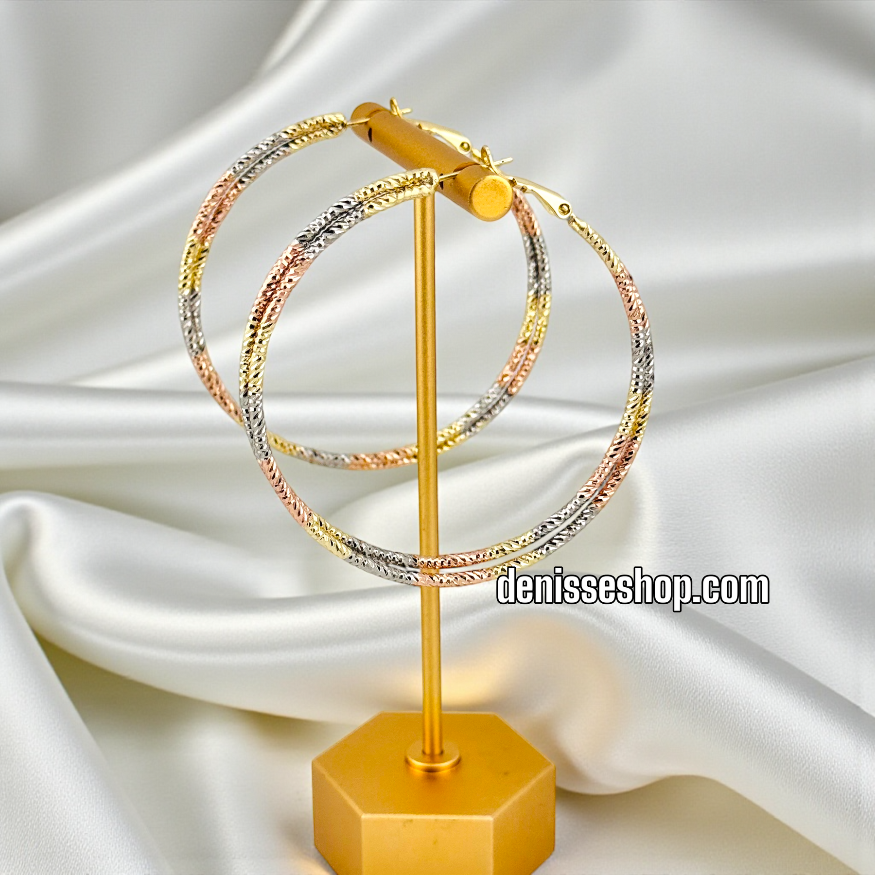14K GOLD PLATED TRICOLOR 50MM DESIGN HOOP EARRING HP956