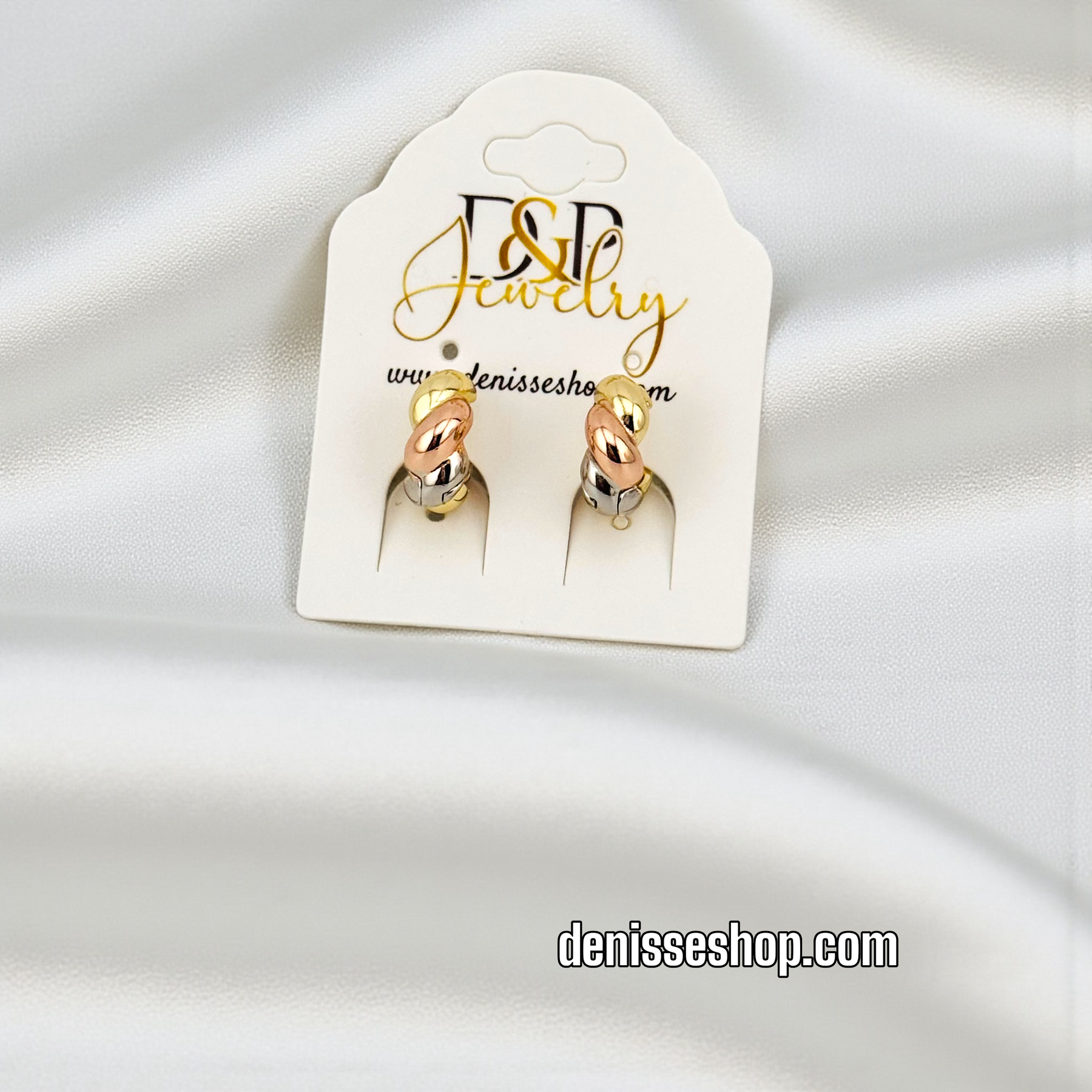 14K GOLD PLATED TRICOLOR DESIGN HOOP EARRING HP950
