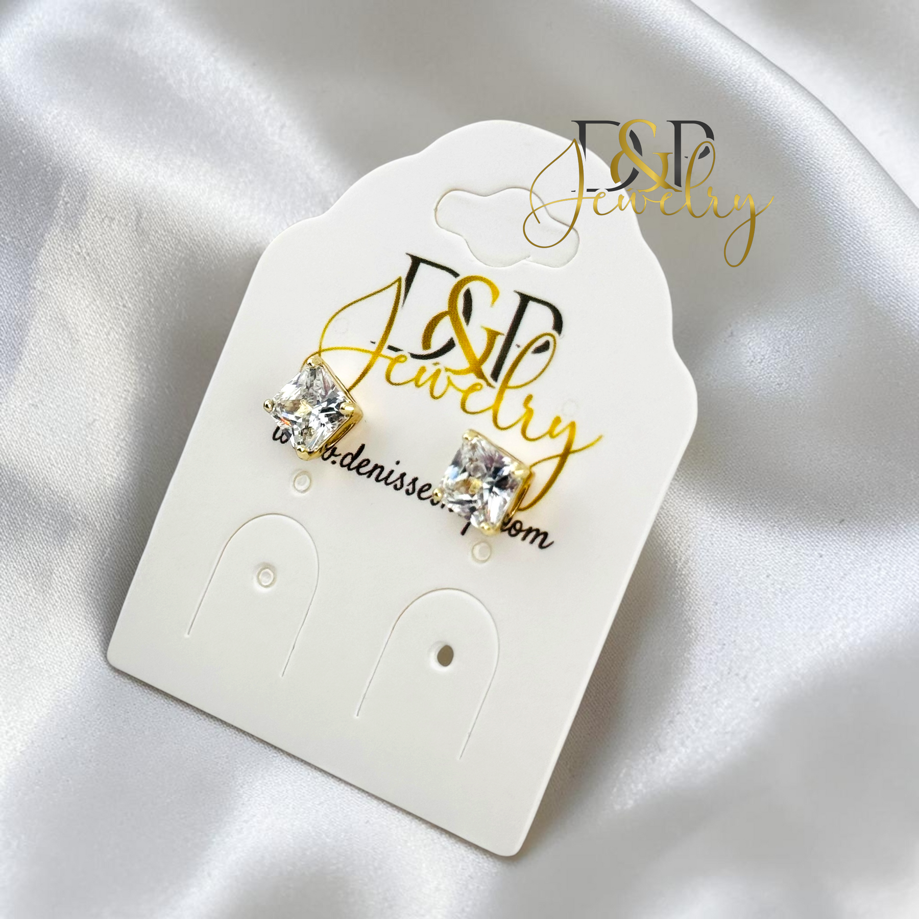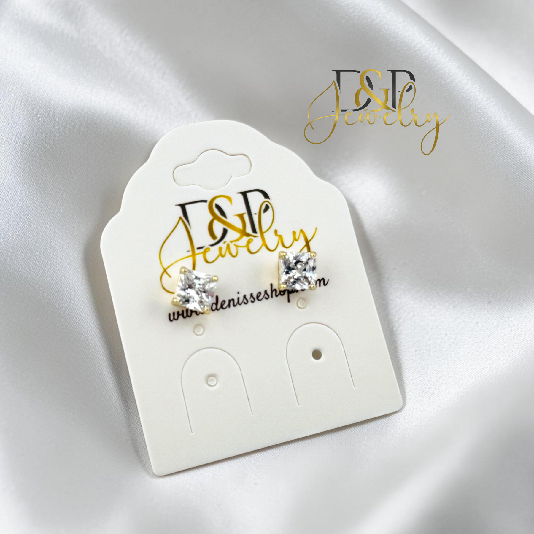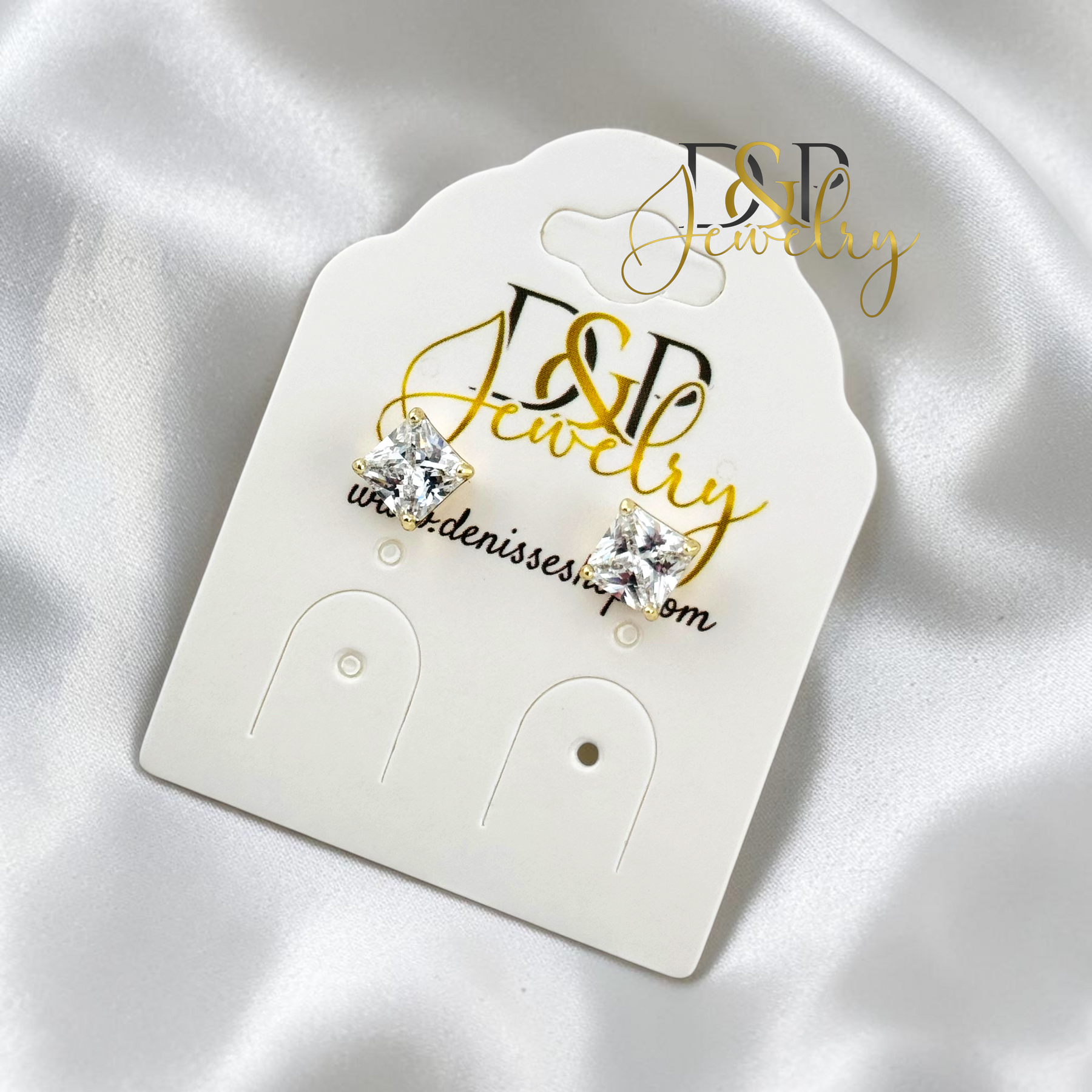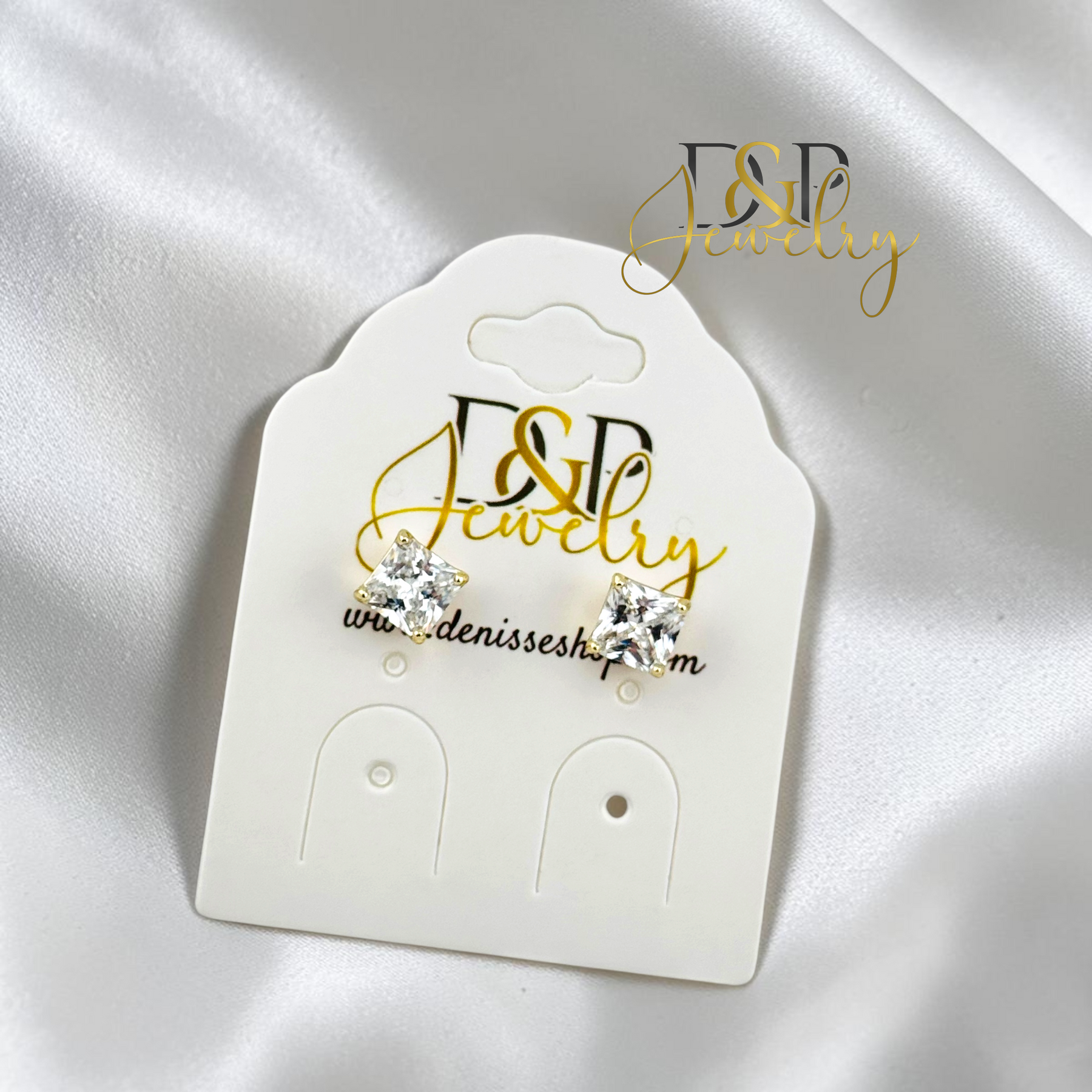 14K GOLD PLATED WHITE SQUARE SHAPE STONE EARRING E1124