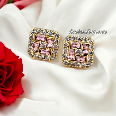 Beautiful 14K laminated gold Earrings luxury Design along with white Zirconia stones. Hypoallergenic and very Comfortable!