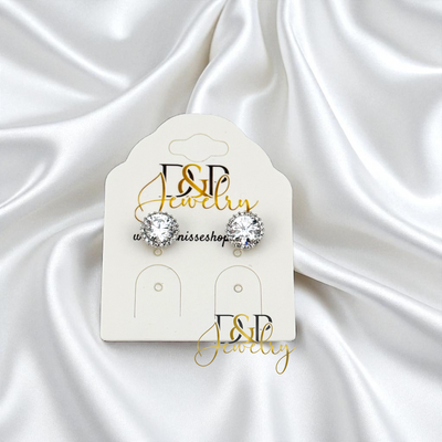 14K SILVER SMALL WHITE STONE DESIGN STUD EARRINGS E1032