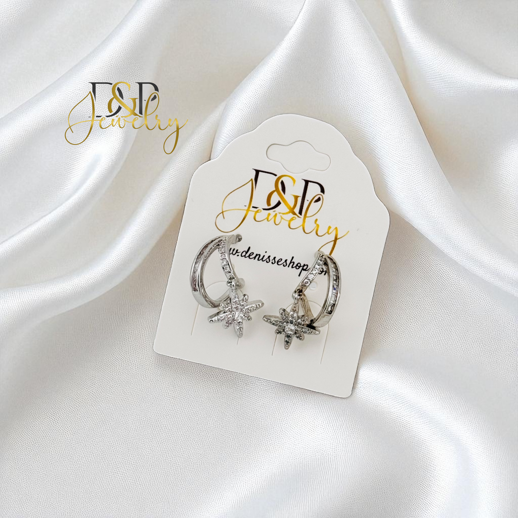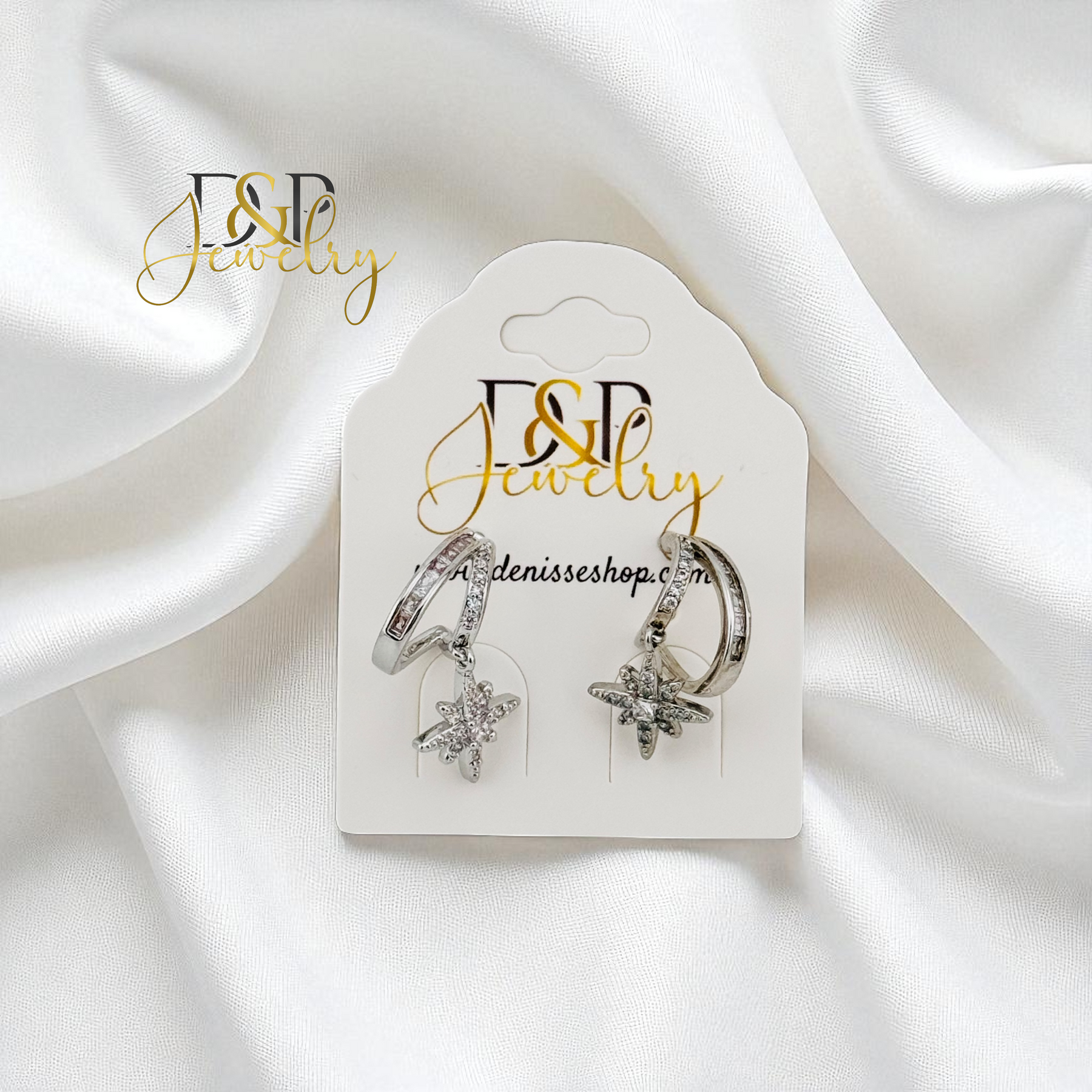14K SILVER STAR DROP DESIGN STUD EARRINGS E1030