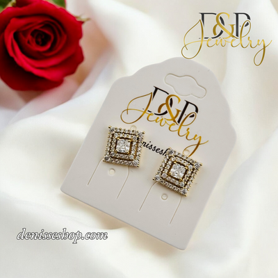14K SQUARE WHITE STONE EARRING E826