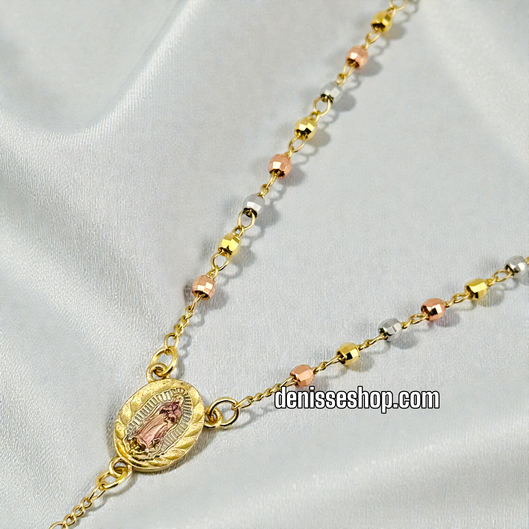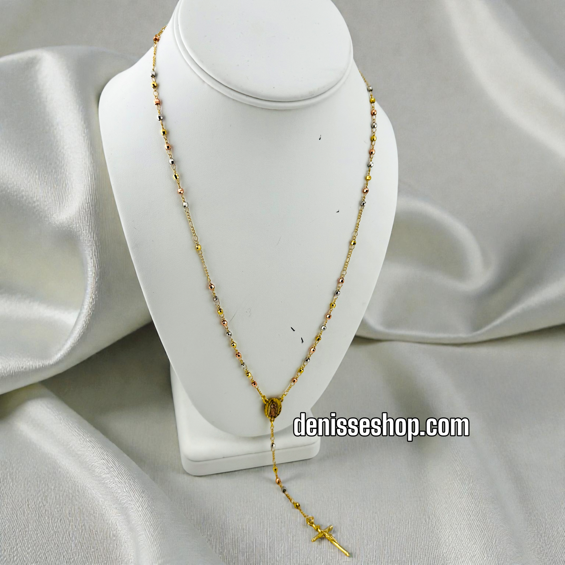 14K GOLD PLATED THREE COLOR ROSARY NECKLACE 20'' R33