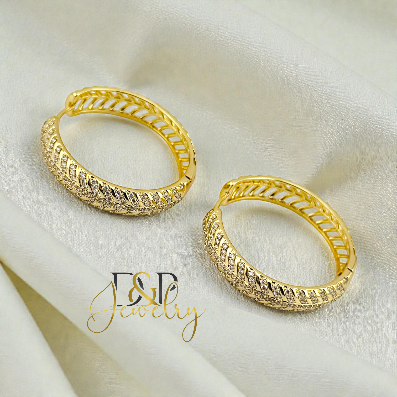 14K GOLD PLATED 50MM DESIGN HOOP EARRING HP954
