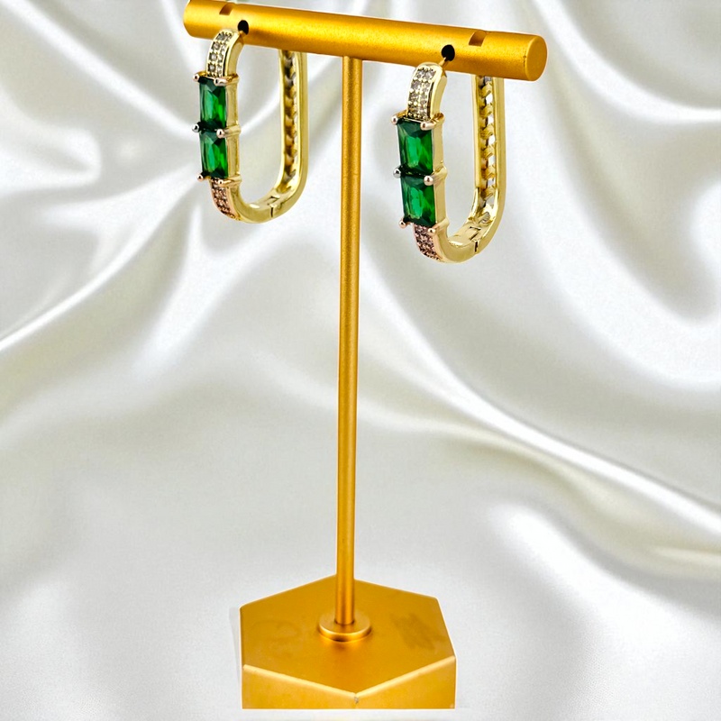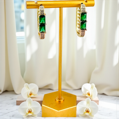 14K GOLD/GREEN MEDIUM HOOP EARRING HP754