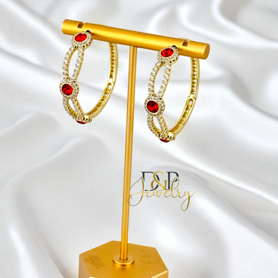 14K GOLD /LONG COLOR  STONES 3 VARIANTS HOOP EARRING HP826