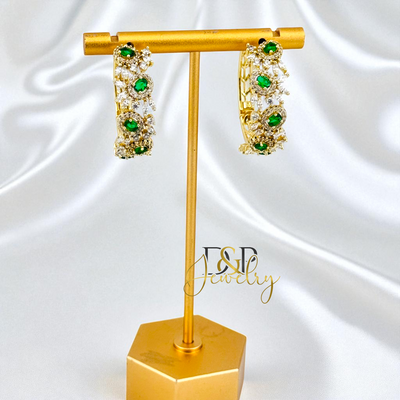 14K GOLD /LONG COLOR STONES 3 VARIANTS HOOP EARRING HP814