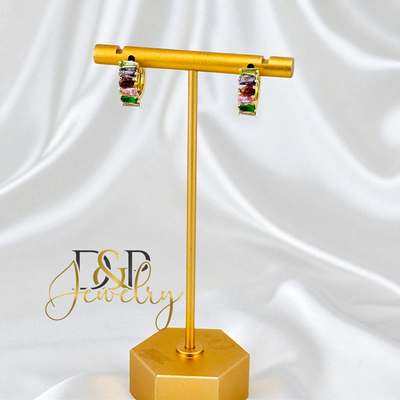 14K GOLD /MULTICOLOR STONES HOOP EARRING HP811