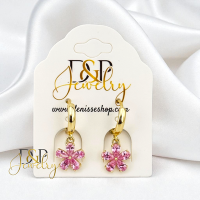 14K GOLD /PINK DANGLE STAR HOOP EARRING HP809