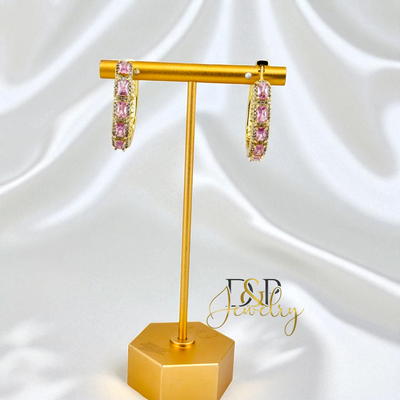 14K GOLD /PINK STONES HOOP EARRING HP832