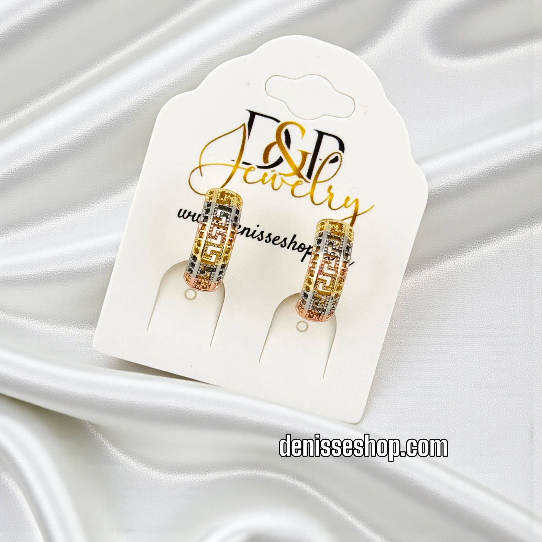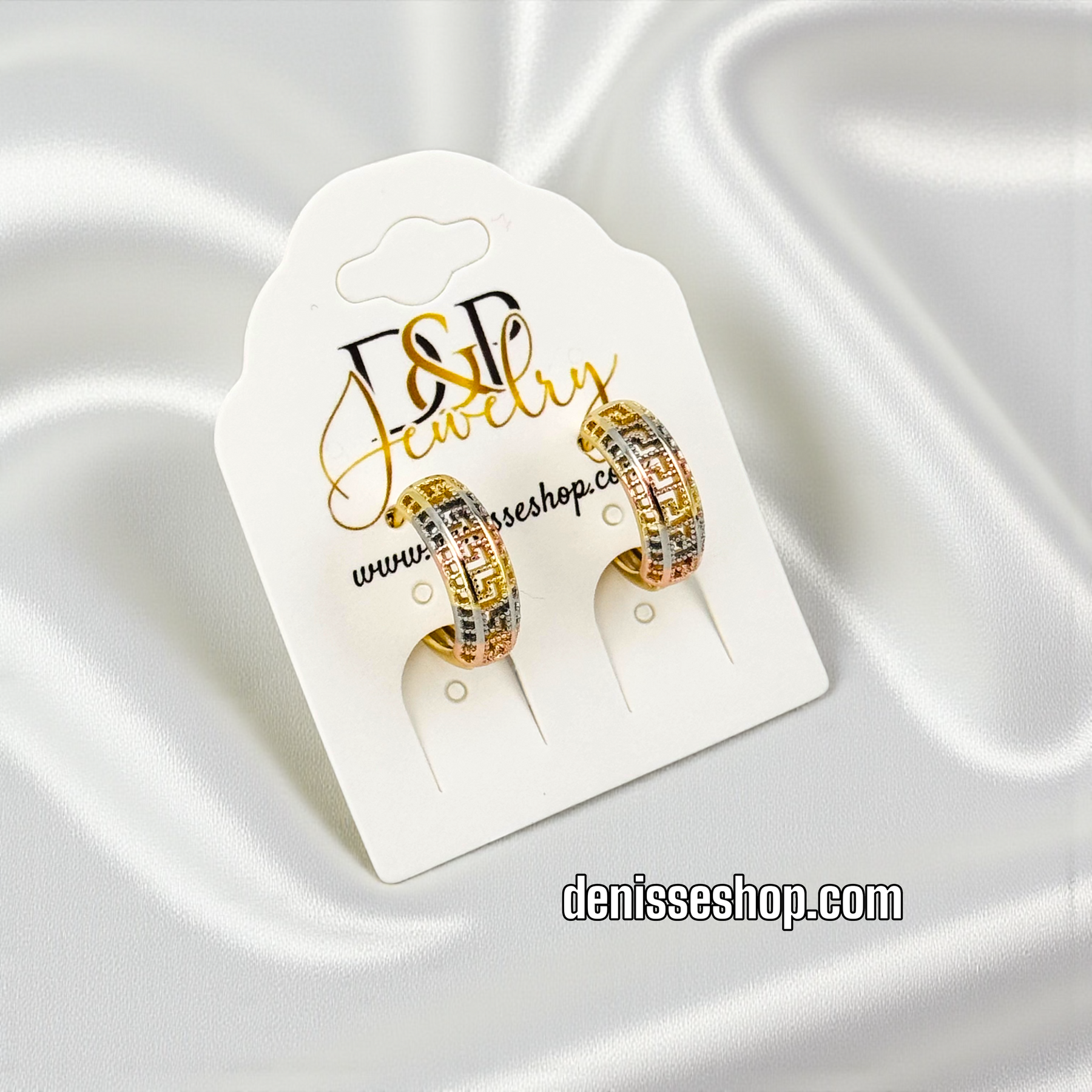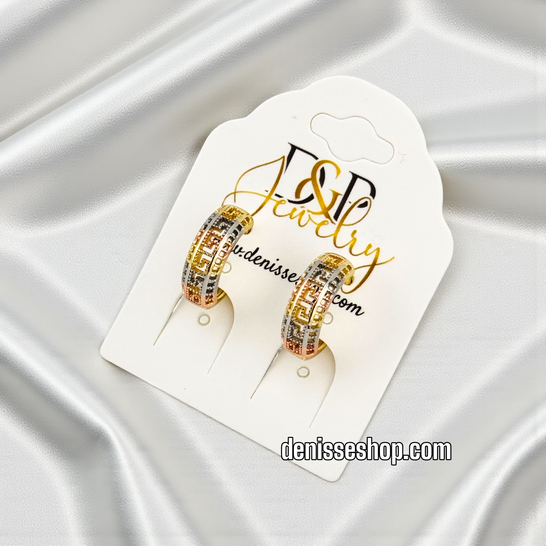 14K GOLD PLATED TRICOLOR 50MM DESIGN HOOP EARRING HP956