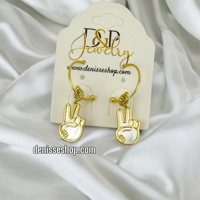 14K GOLD/ WHITE FINGERS VICTORY HOOP EARRING E691
