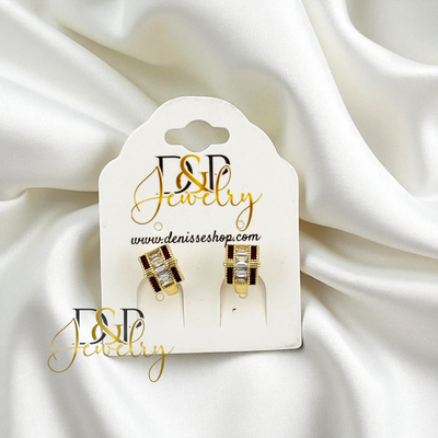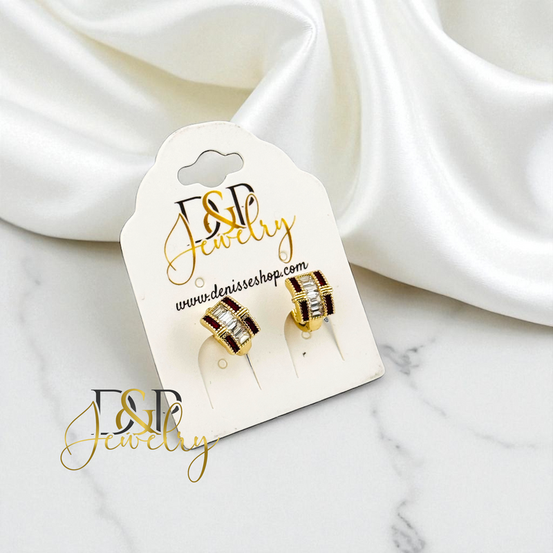 14K GOLD /WHITE /RED STONE FASHION HOOP EARRING HP742