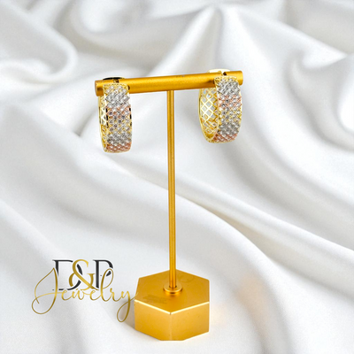14K GOLD/WHITE STONE FASHION MEDIUM HOOP EARRING HP749
