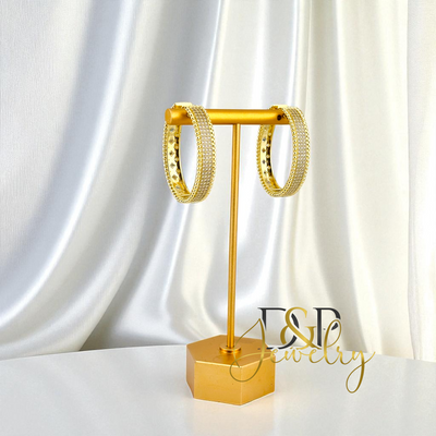 14K SMALL WHITE STONE HOOP EARRING HP860