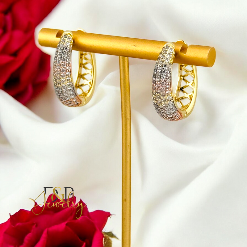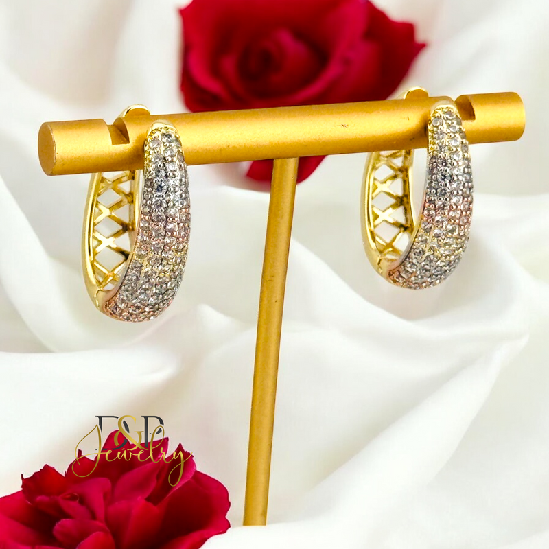 Beautiful 18k laminated gold Earrings star Design along with white Zirconia stones. Hypoallergenic and very Comfortable!