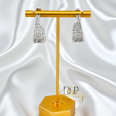 Beautiful 14K laminated White gold Earrings luxury Design along with white Zirconia stones. Hypoallergenic and very Comfortable!