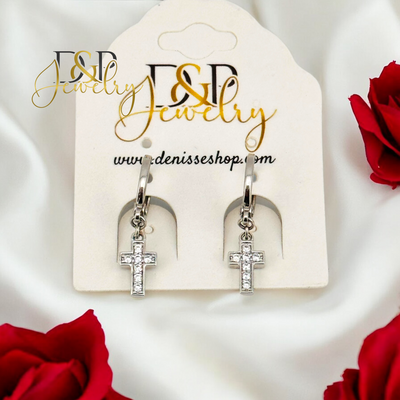 SILVER CROSS CHARM DESIGN HOOP EARRING HP681