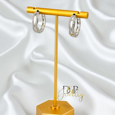 Beautiful 14K laminated White gold Earrings luxury Design along with white Zirconia stones. Hypoallergenic and very Comfortable!