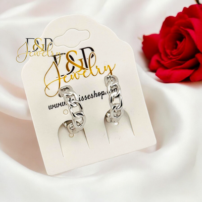 SILVER PLAIN CUBAN LINK DESIGN HOOP EARRING HP675