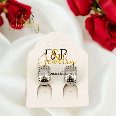 Beautiful 14K laminated White gold Earrings luxury Design along with white Zirconia stones. Hypoallergenic and very Comfortable!
