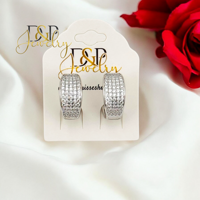 Beautiful 14K laminated White gold Earrings luxury Design along with white Zirconia stones. Hypoallergenic and very Comfortable!