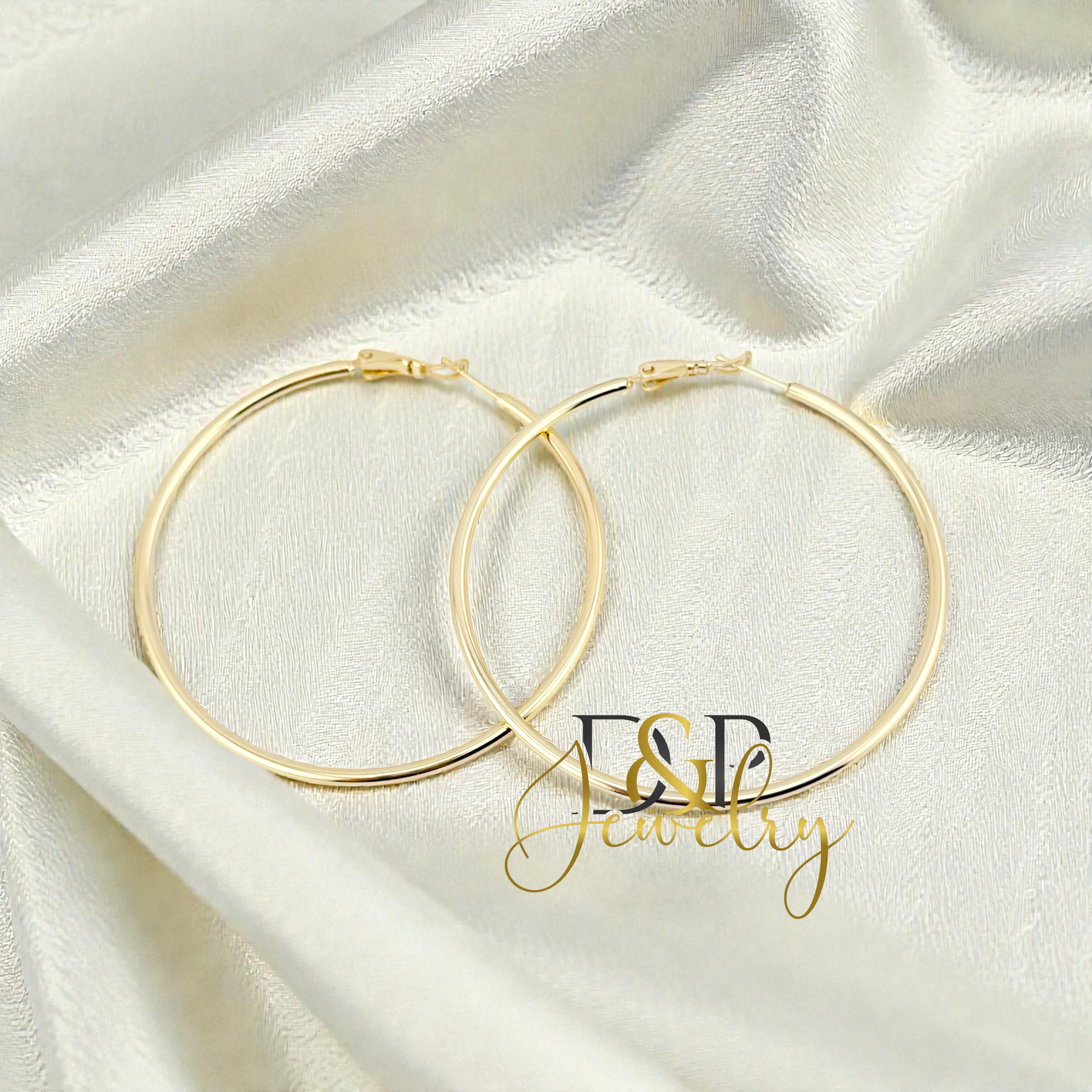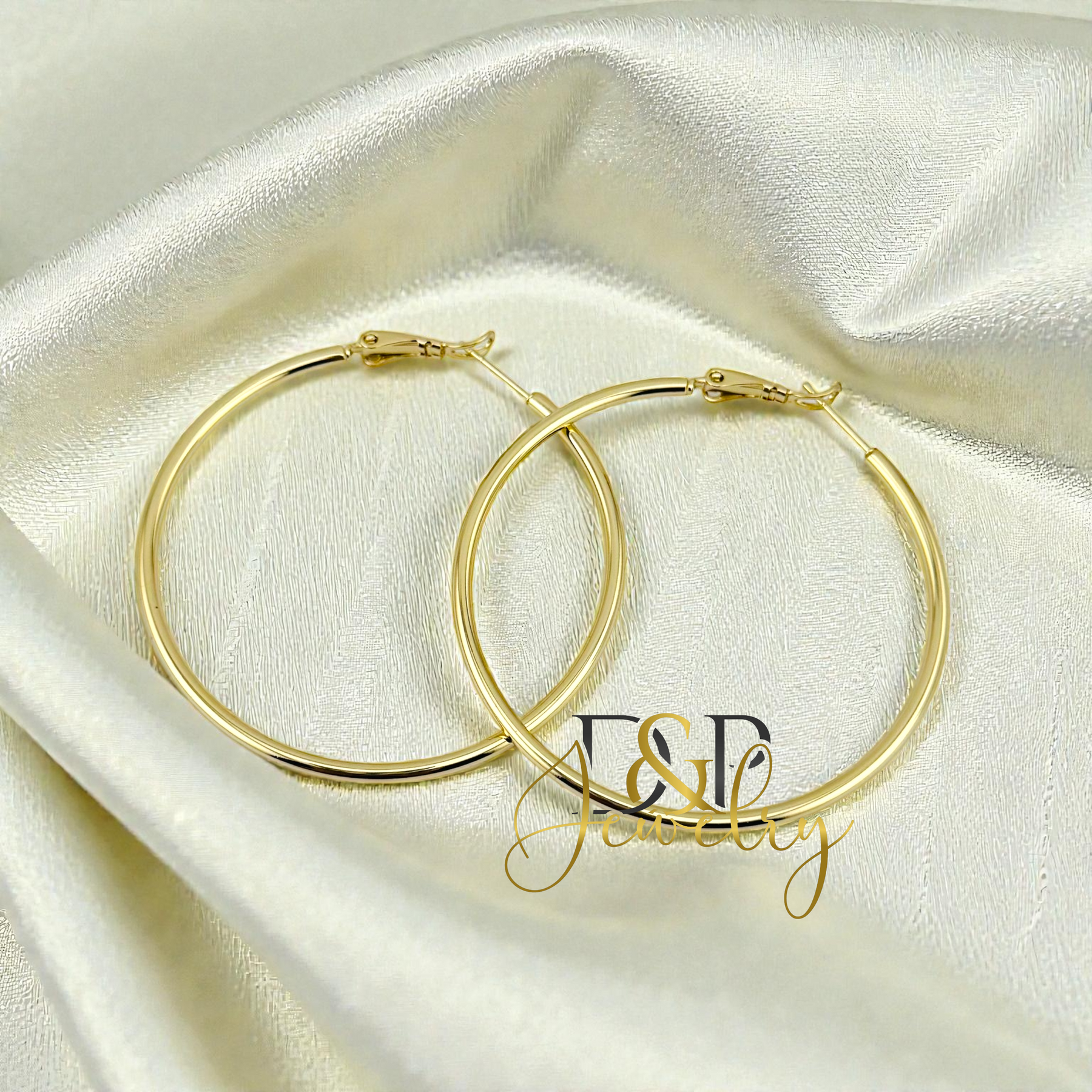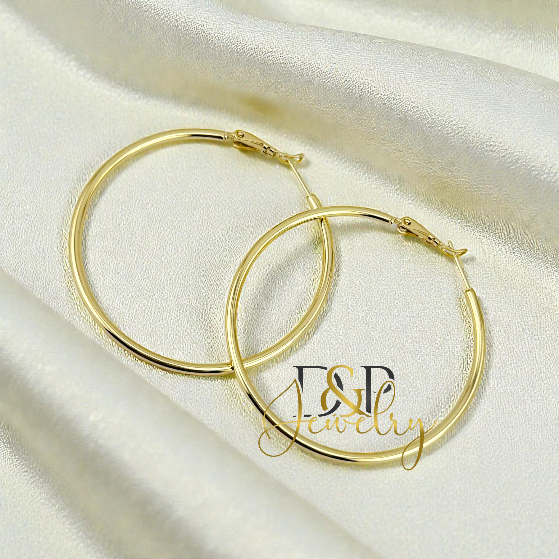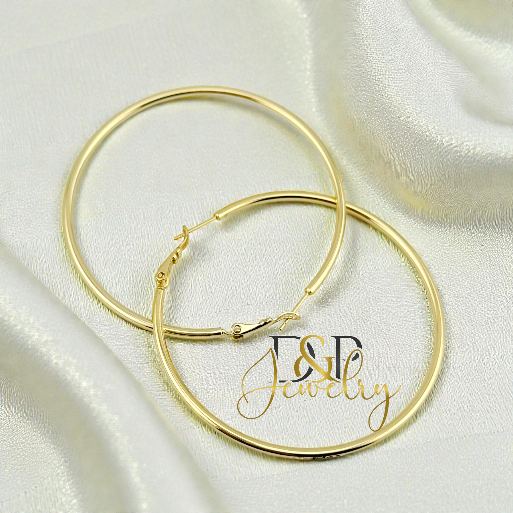 14K GOLD PLATED 50MM DESIGN HOOP EARRING HP954