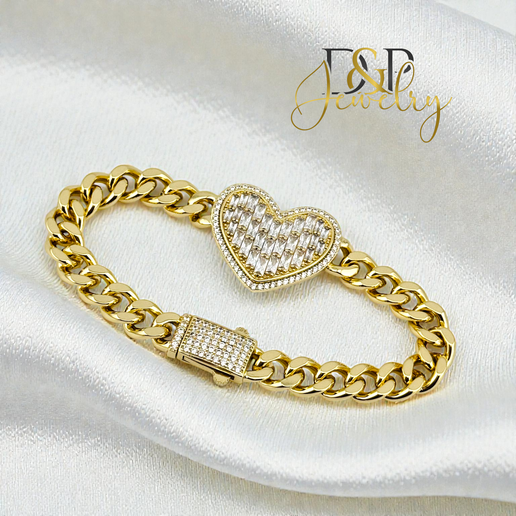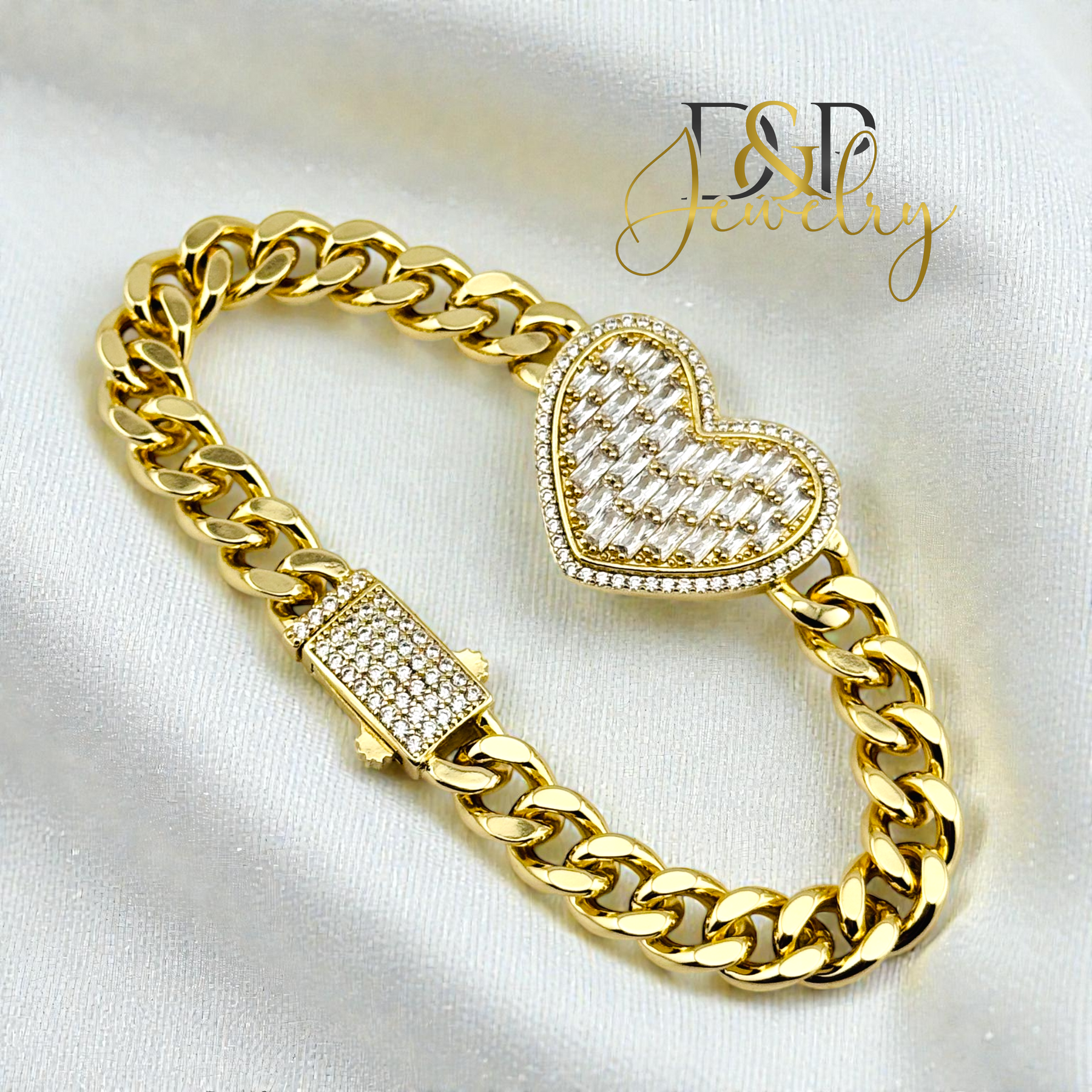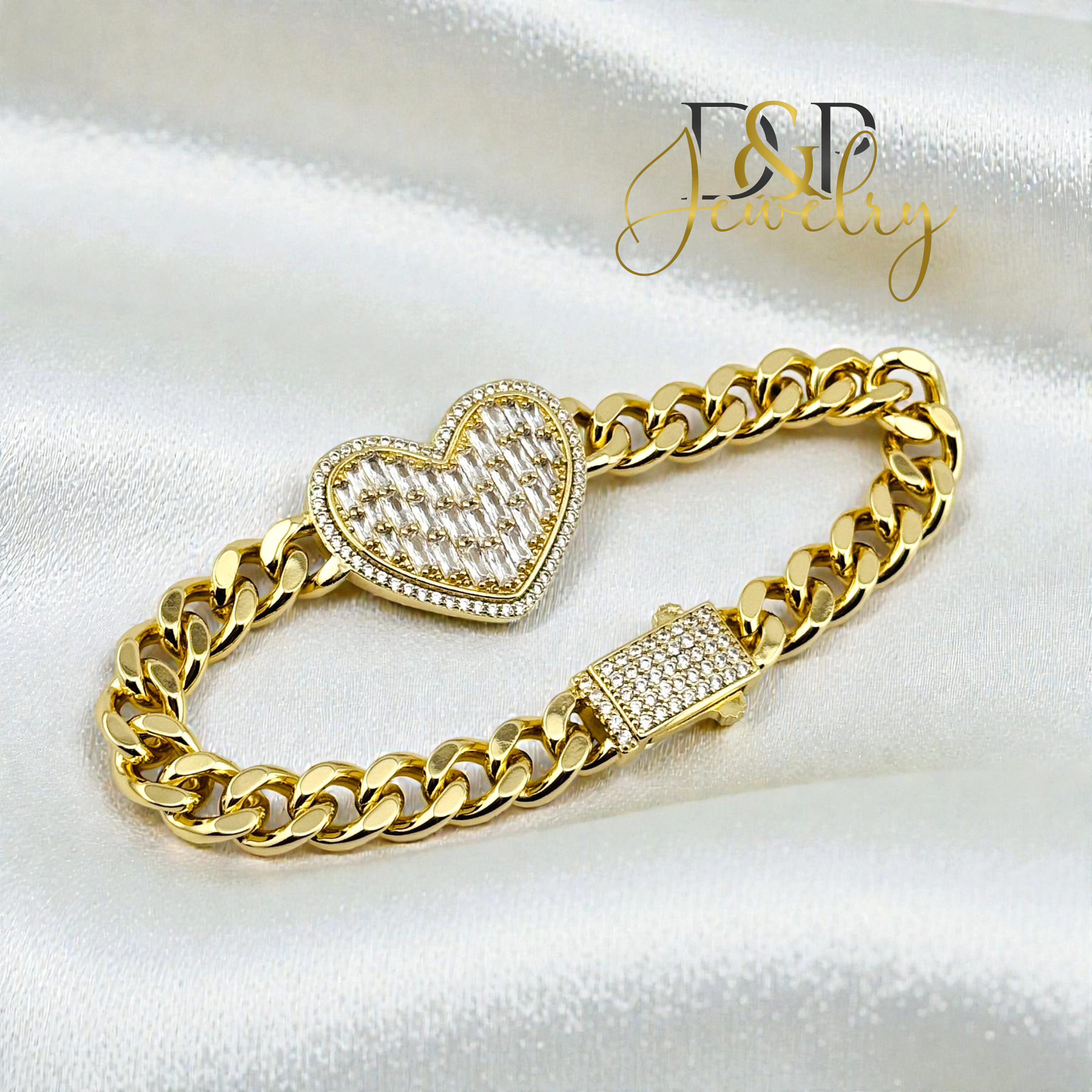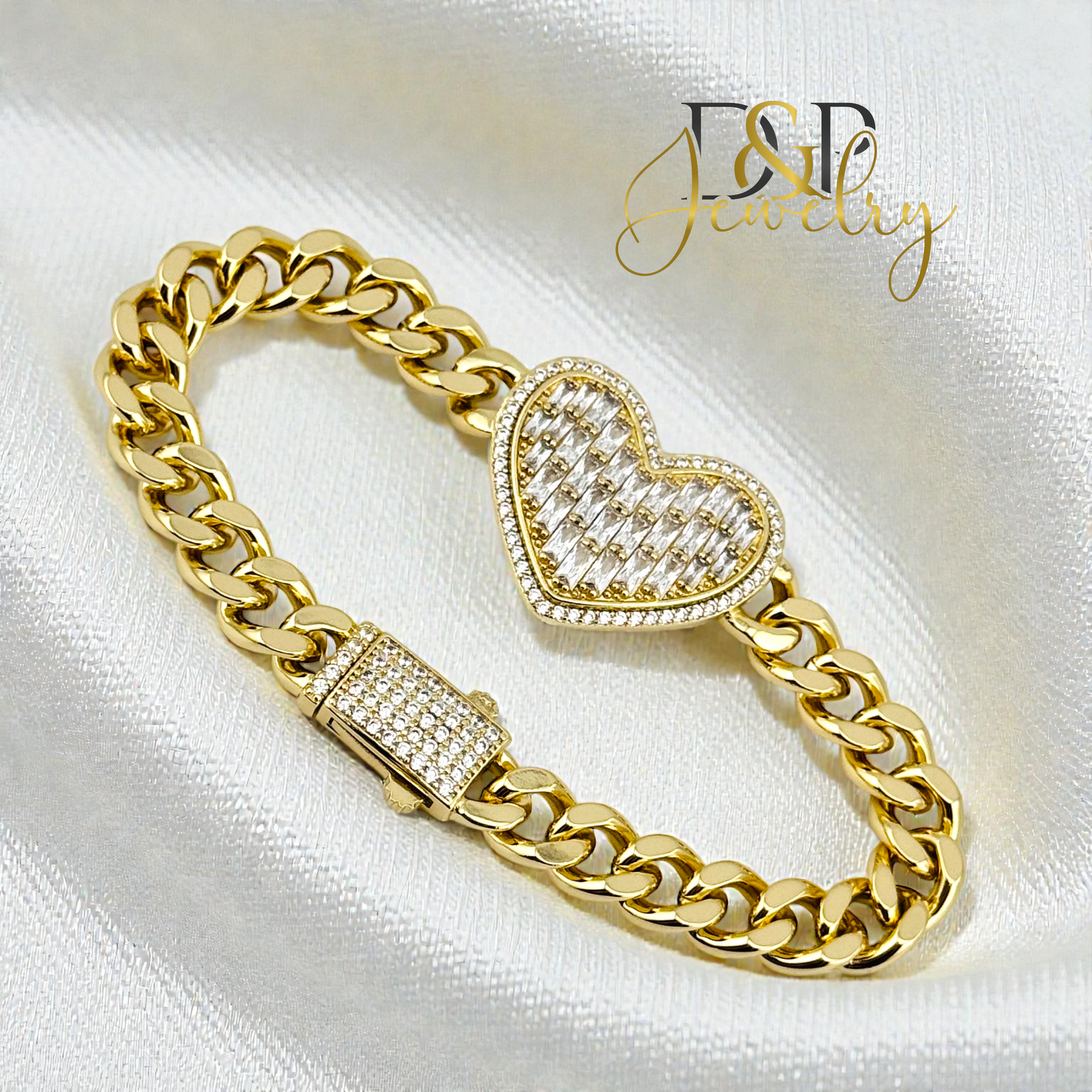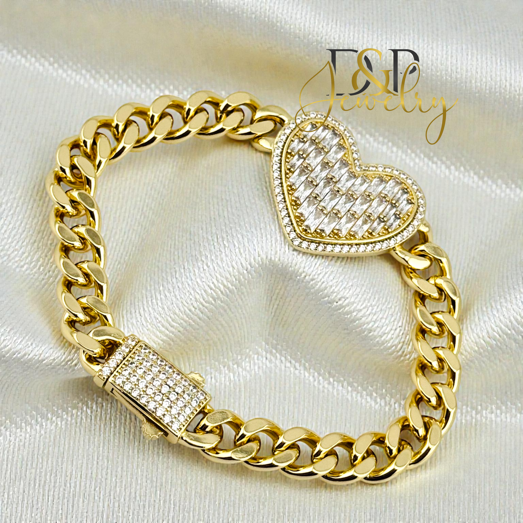 - This refined 14K gold-plated bracelet showcases a lustrous polished link construction that exudes timeless elegance. Secured with a dependable Onee-lock clasp, it offers both security and style for any occasion. 7.5'' Size. this versatile piece transitions seamlessly from daily wear to evening events, making it an essential addition to any jewelry collection.