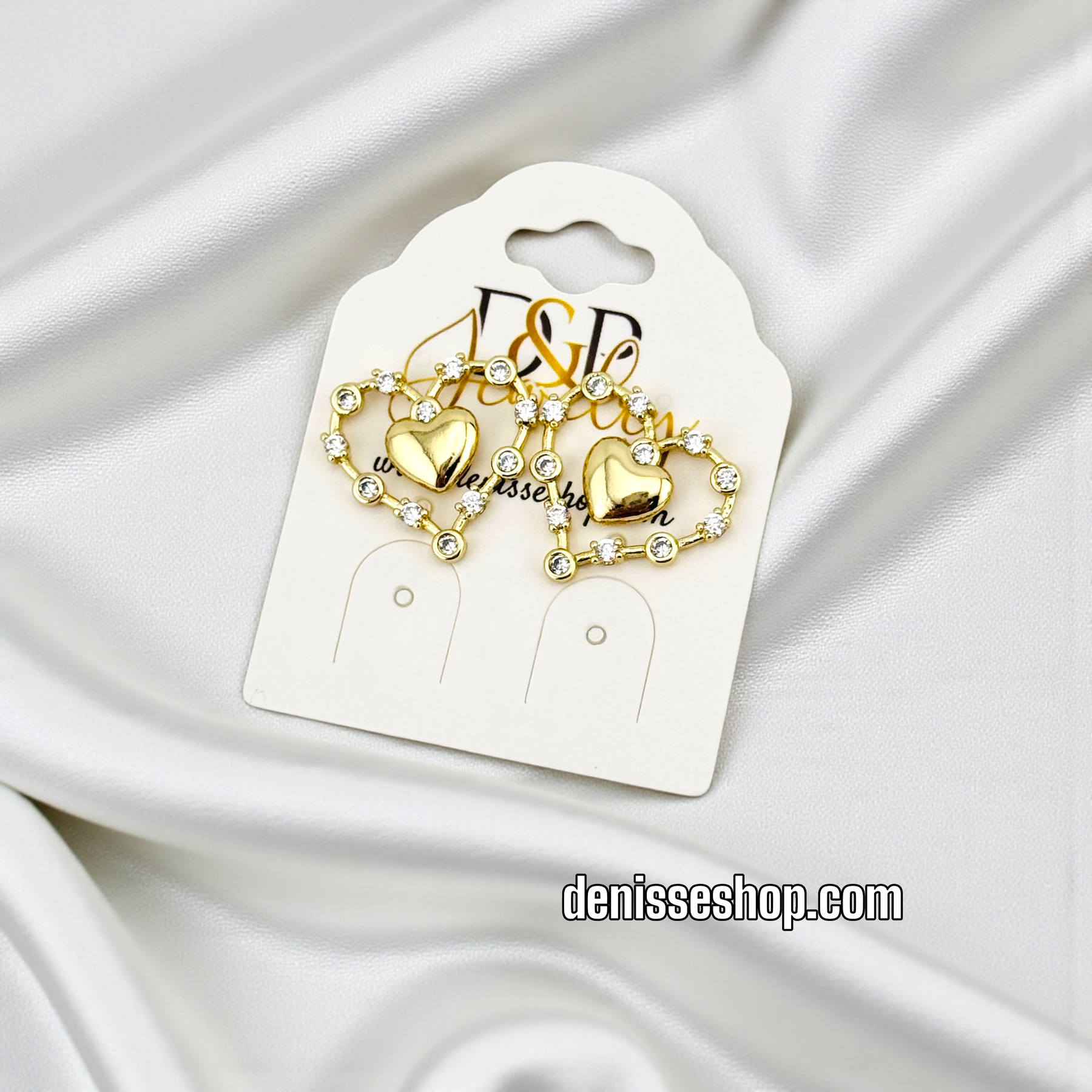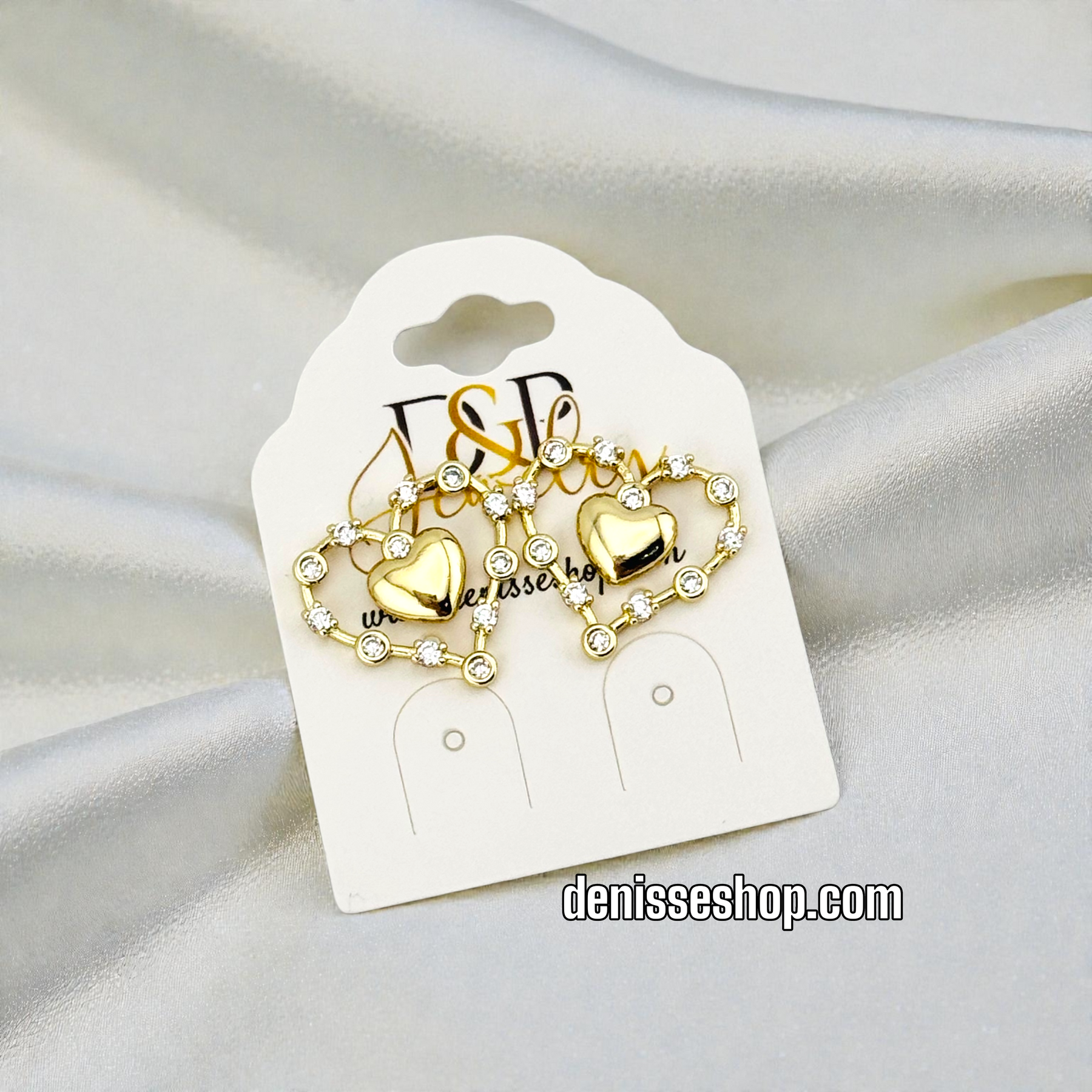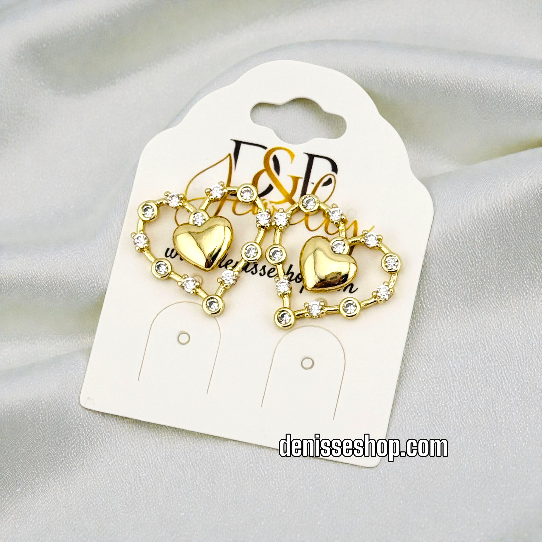 14K GOLD PLATED HEART WITH WHITE STONES STUD EARRING E1094