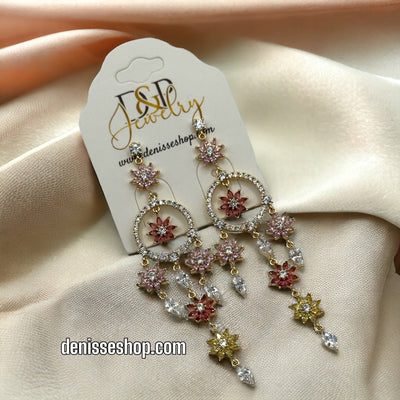 Beautiful 18K laminated gold Earrings luxury Design along with white Zirconia stones. Hypoallergenic and very Comfortable!