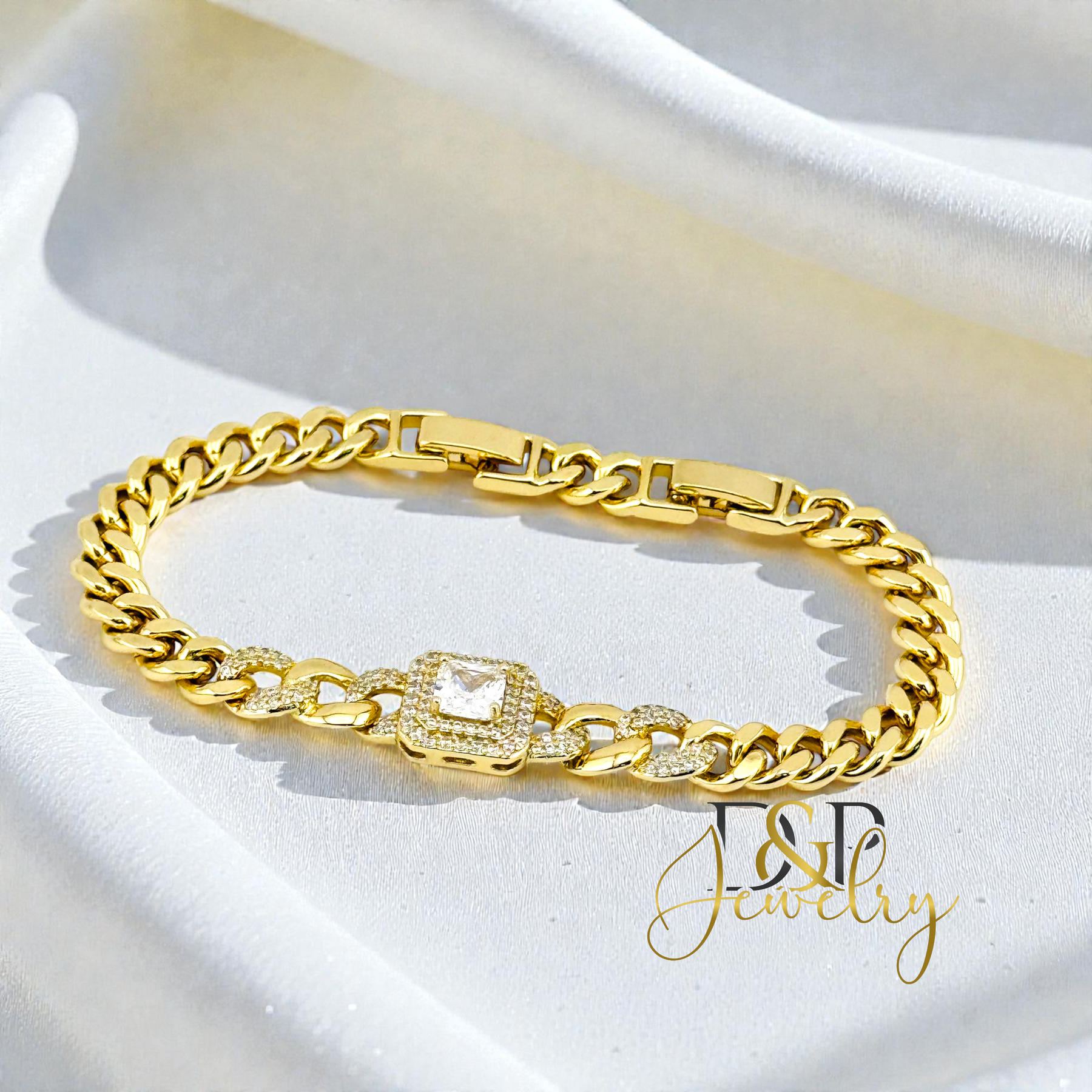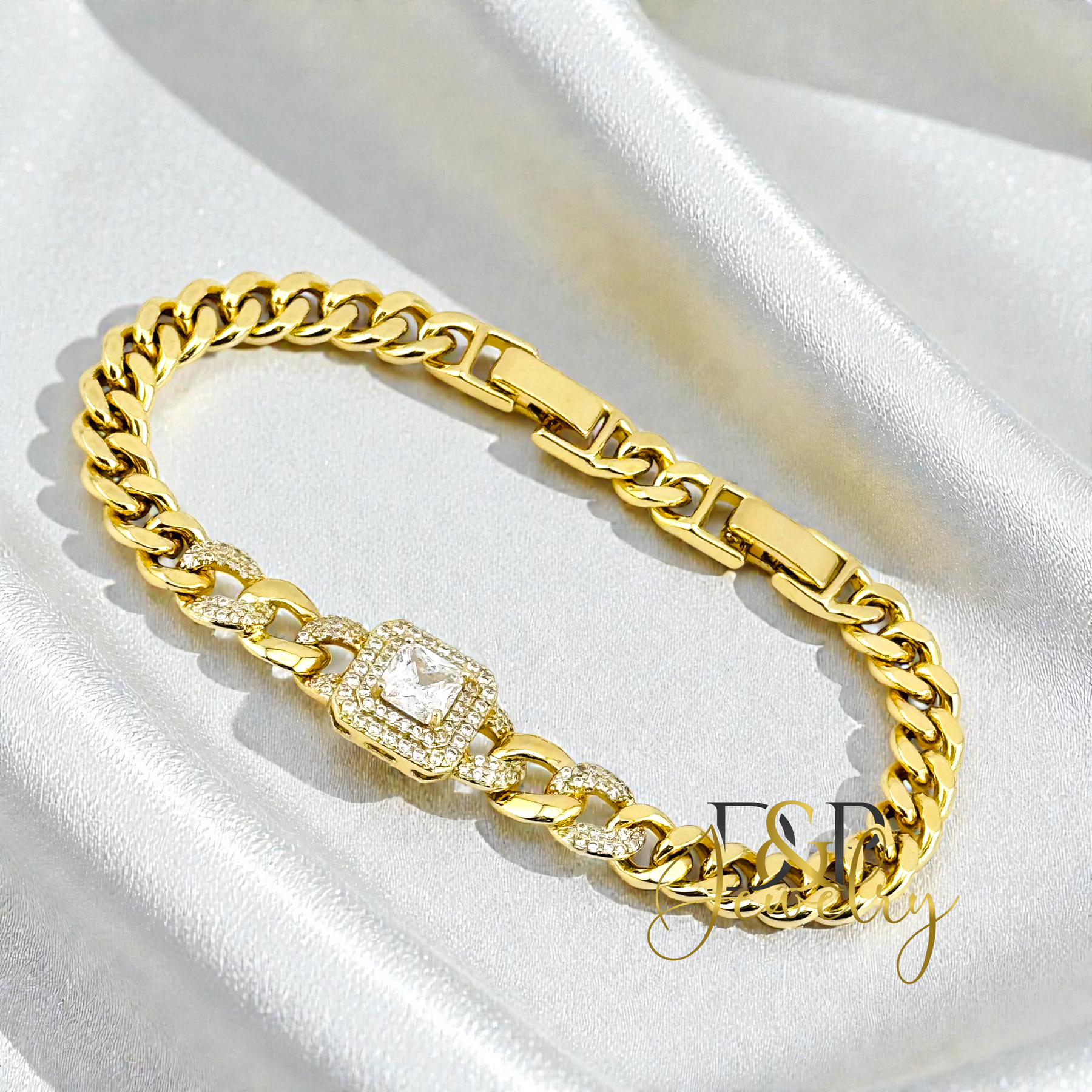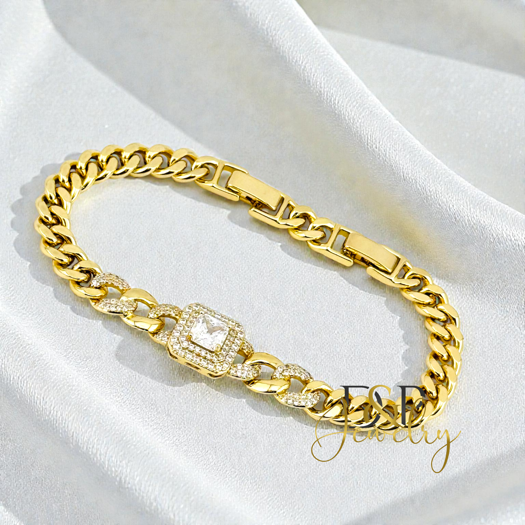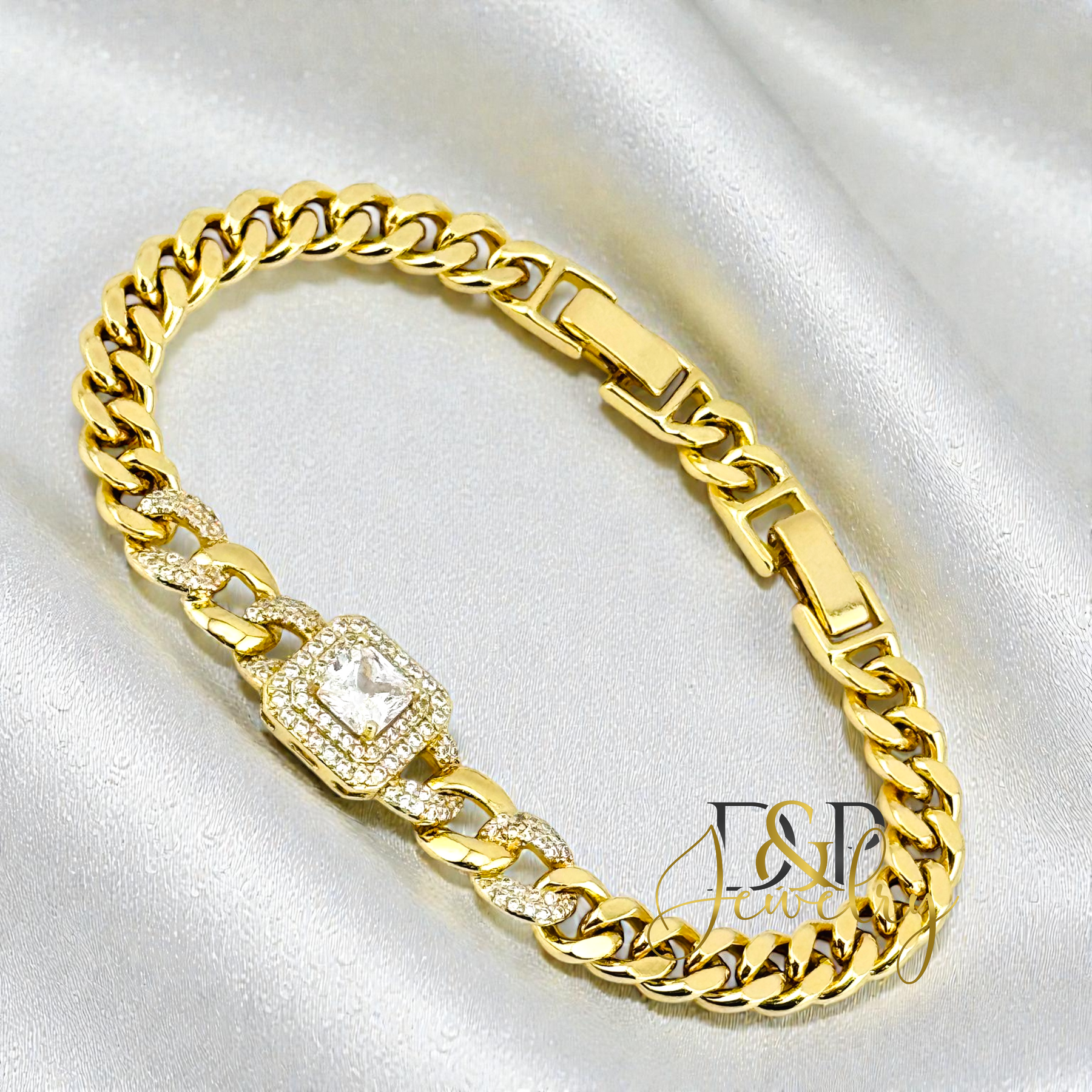 CUBAN DIAMOND 14K GOLD PLATED BRACELET BR886