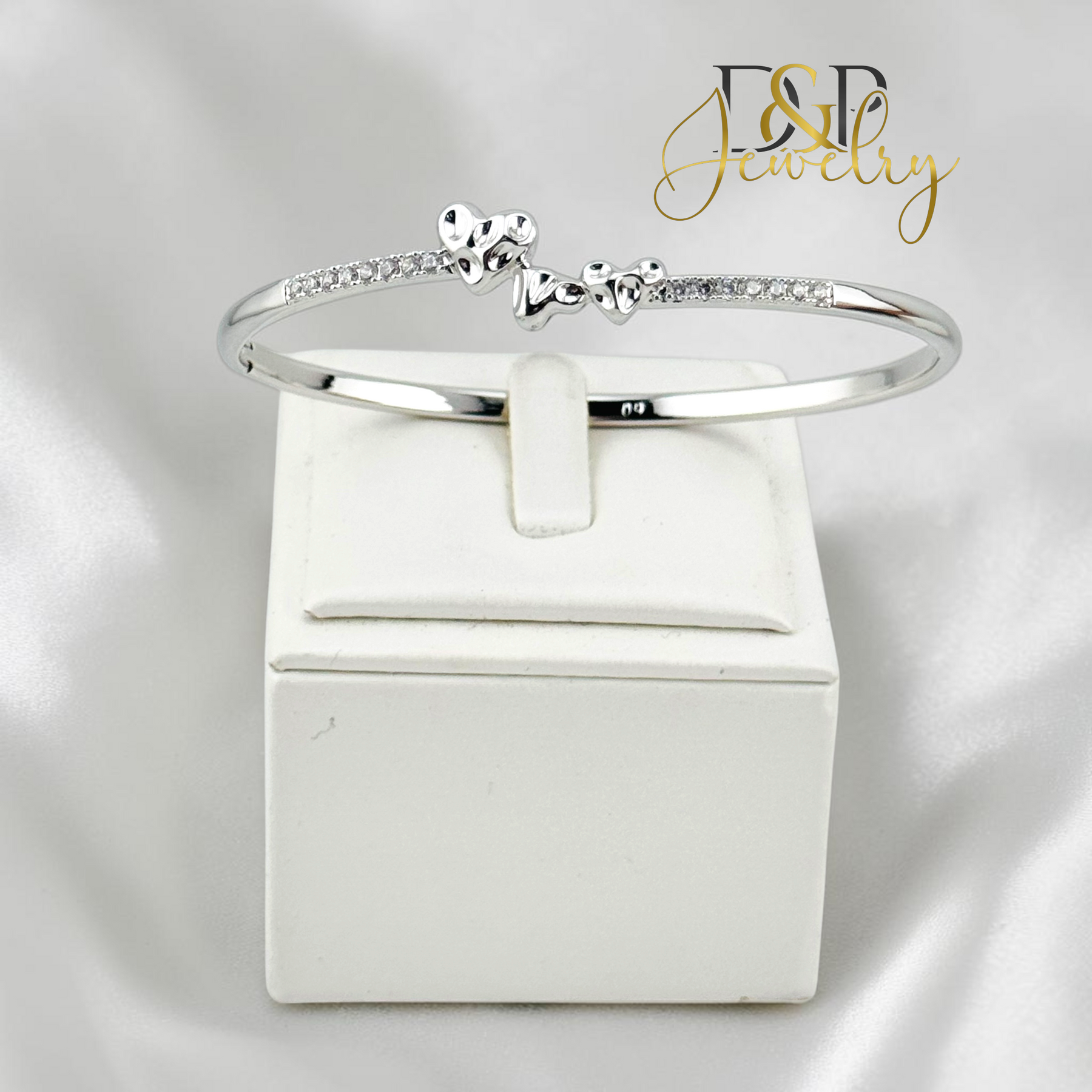SILVER ELEGANT HEART BANGLE BRACELET 57-60MM BR983