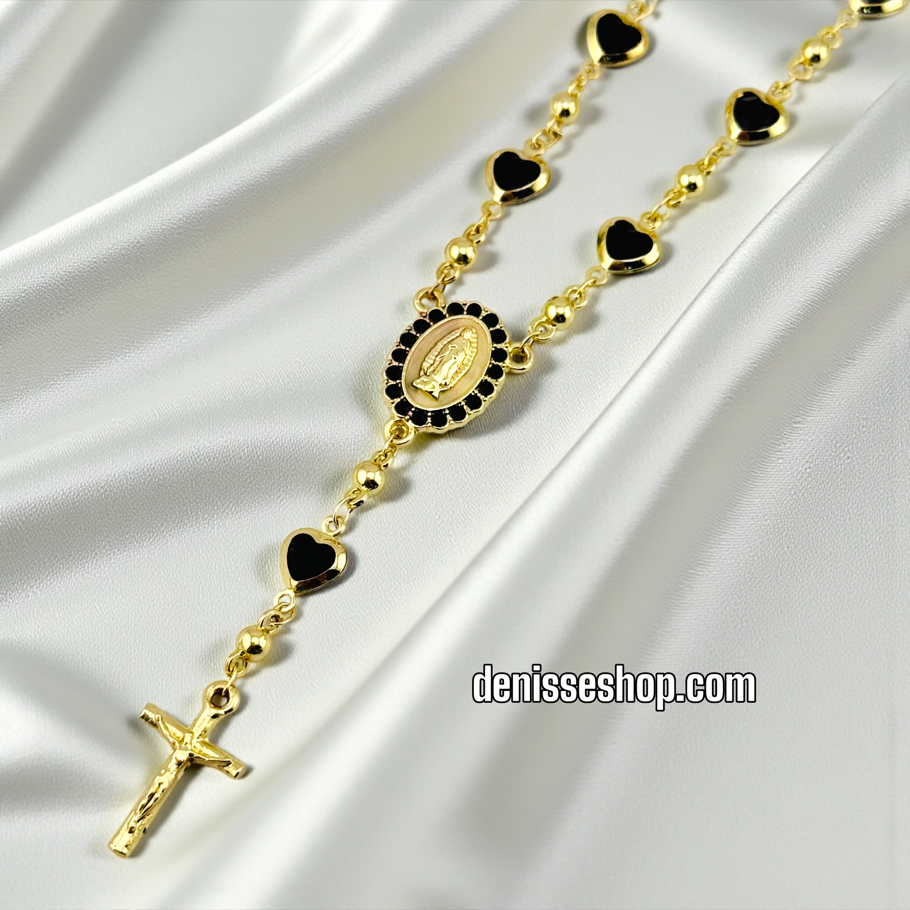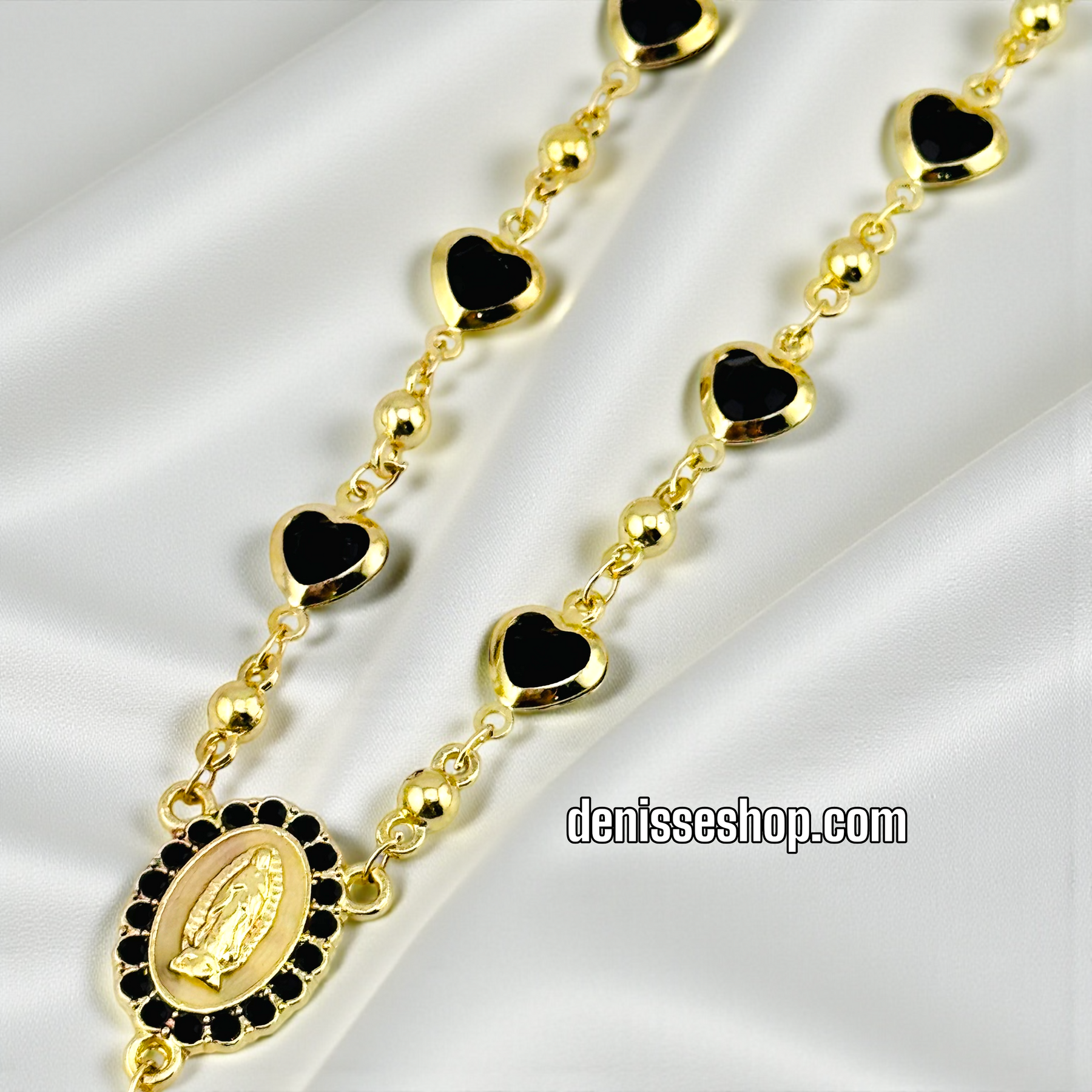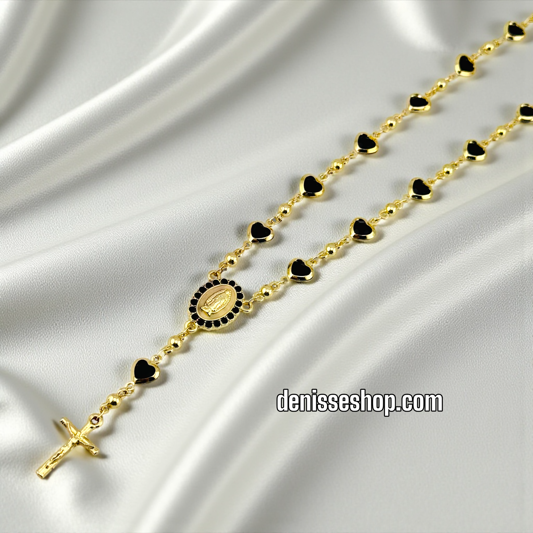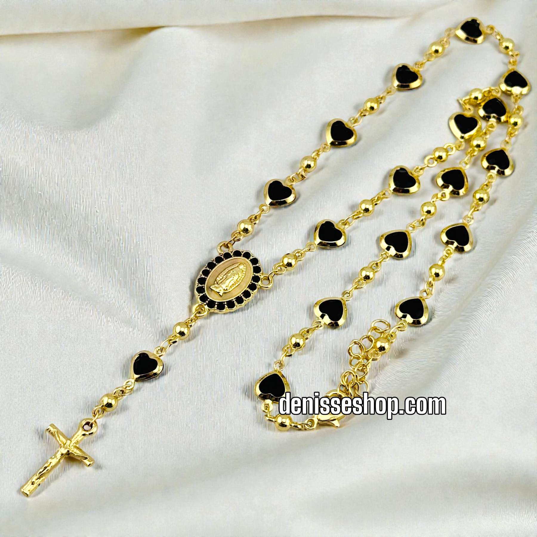 14K GOLD PLATED BLACK ROSARY NECKLACE 18&