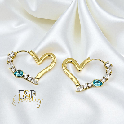 14K GOLD/HEART /BLUE STONE DESIGN HOOP EARRING HP801