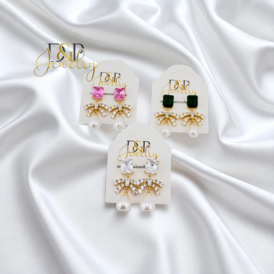 14K GOLD/PEAR/STONE 3 VARIANTS STUD EARRING E1026