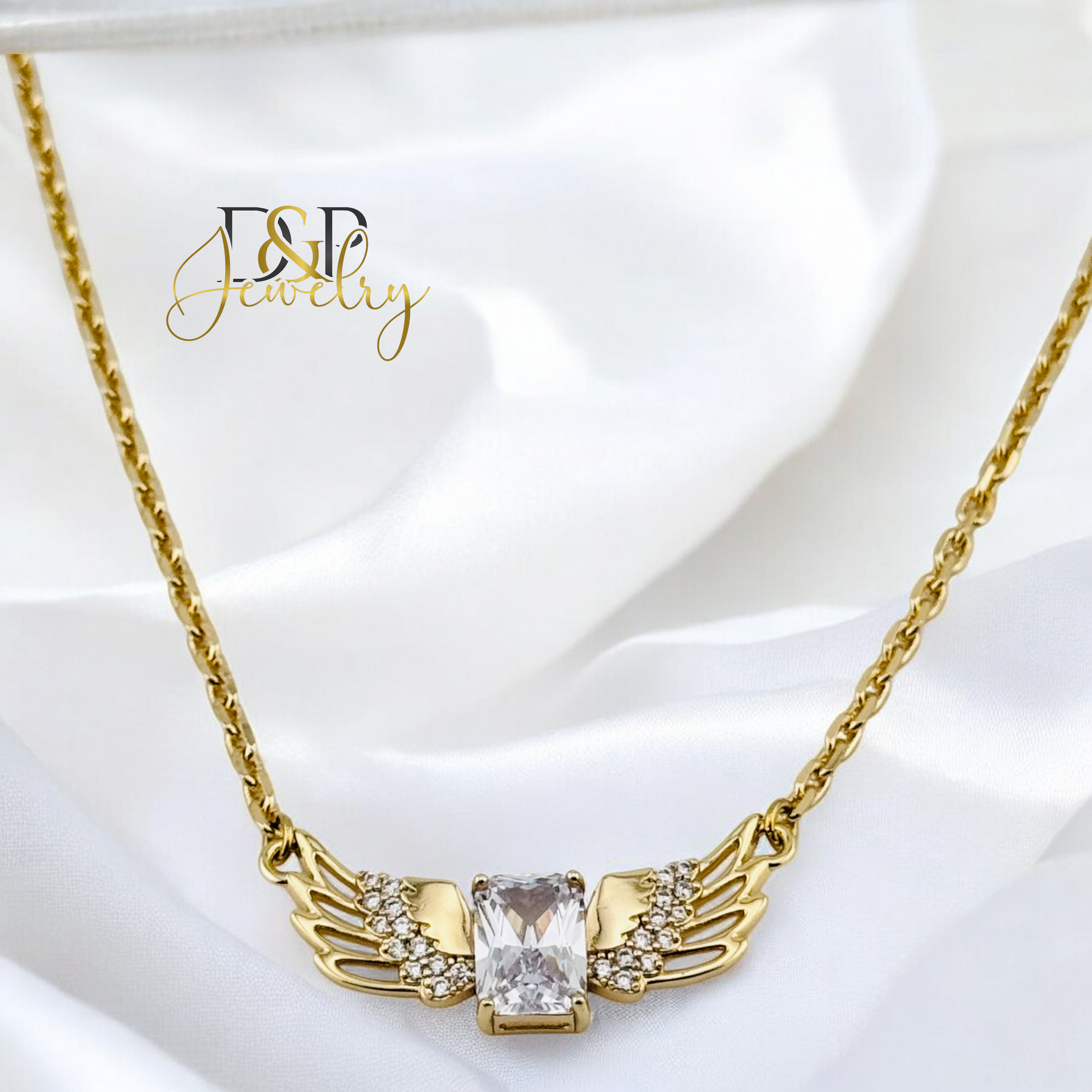14K GOLD /WHITE STONE WINGS NECKLACE N301