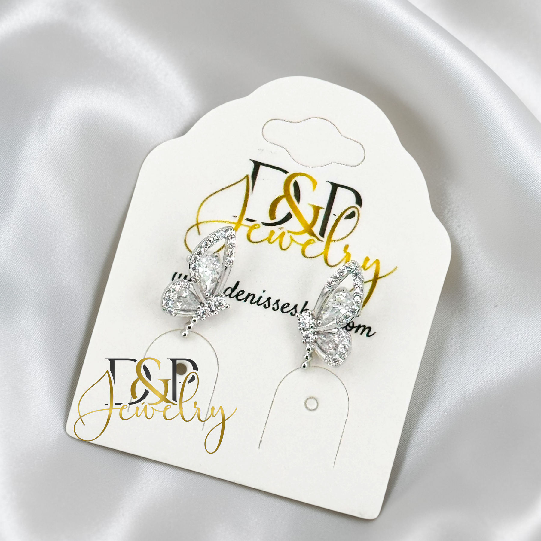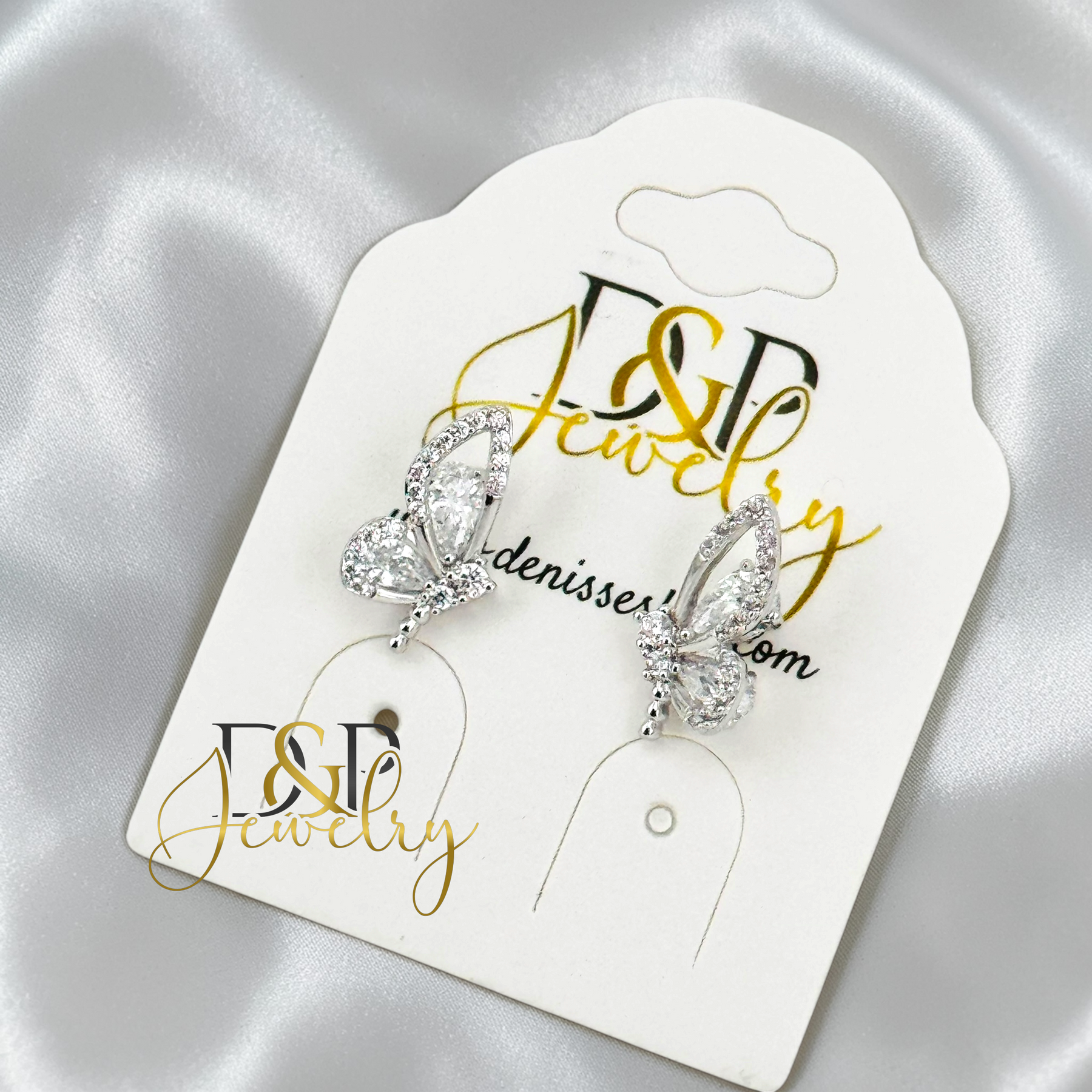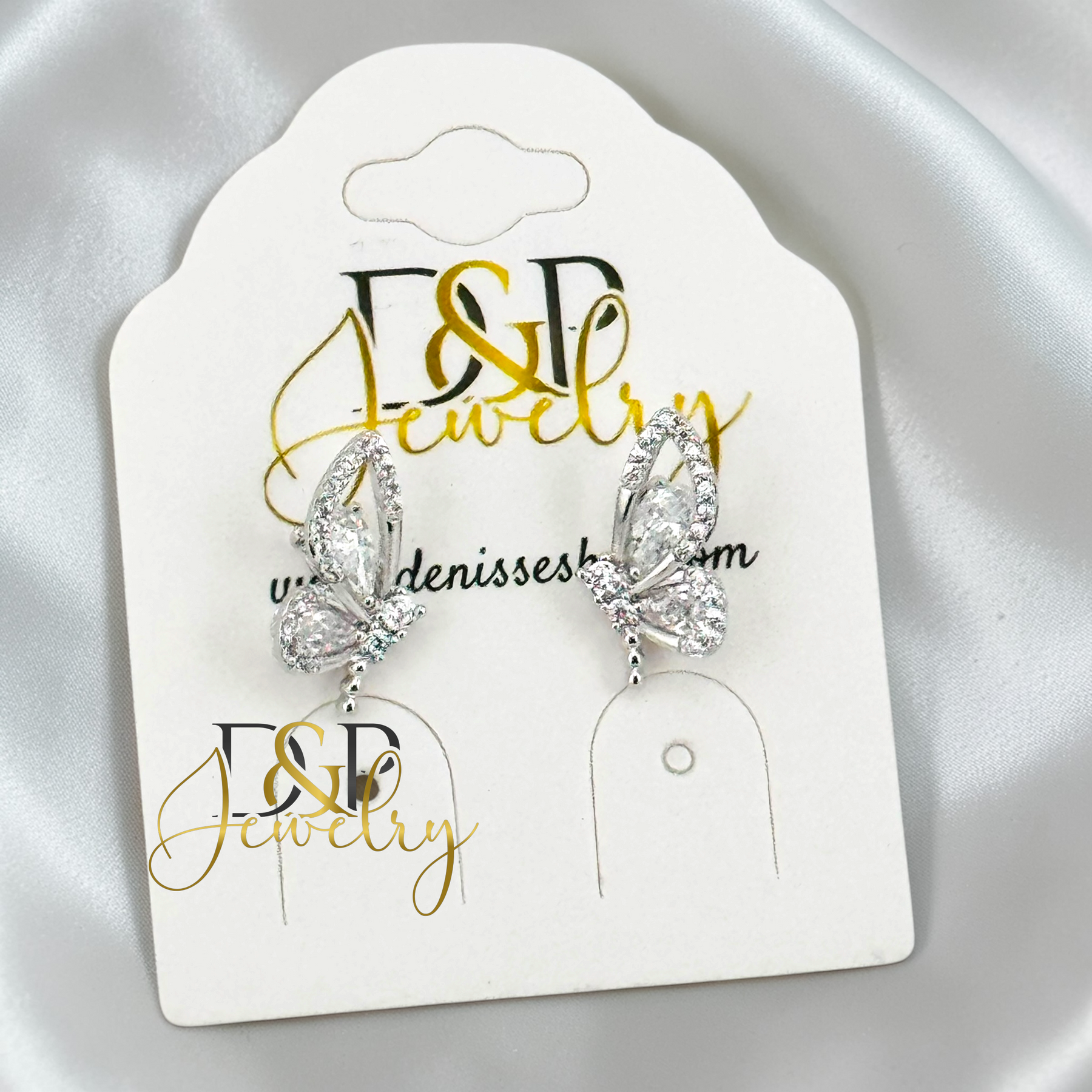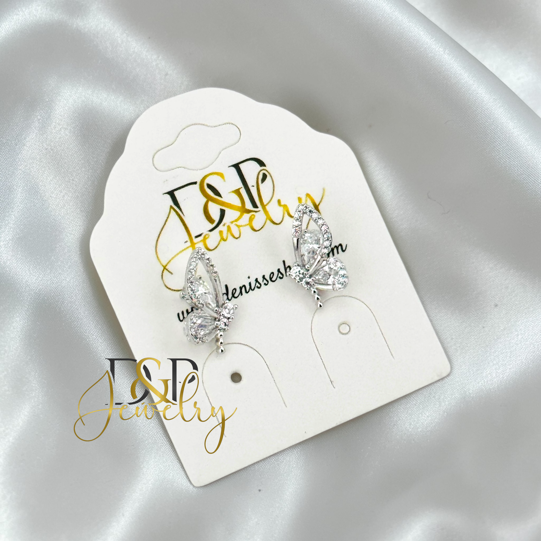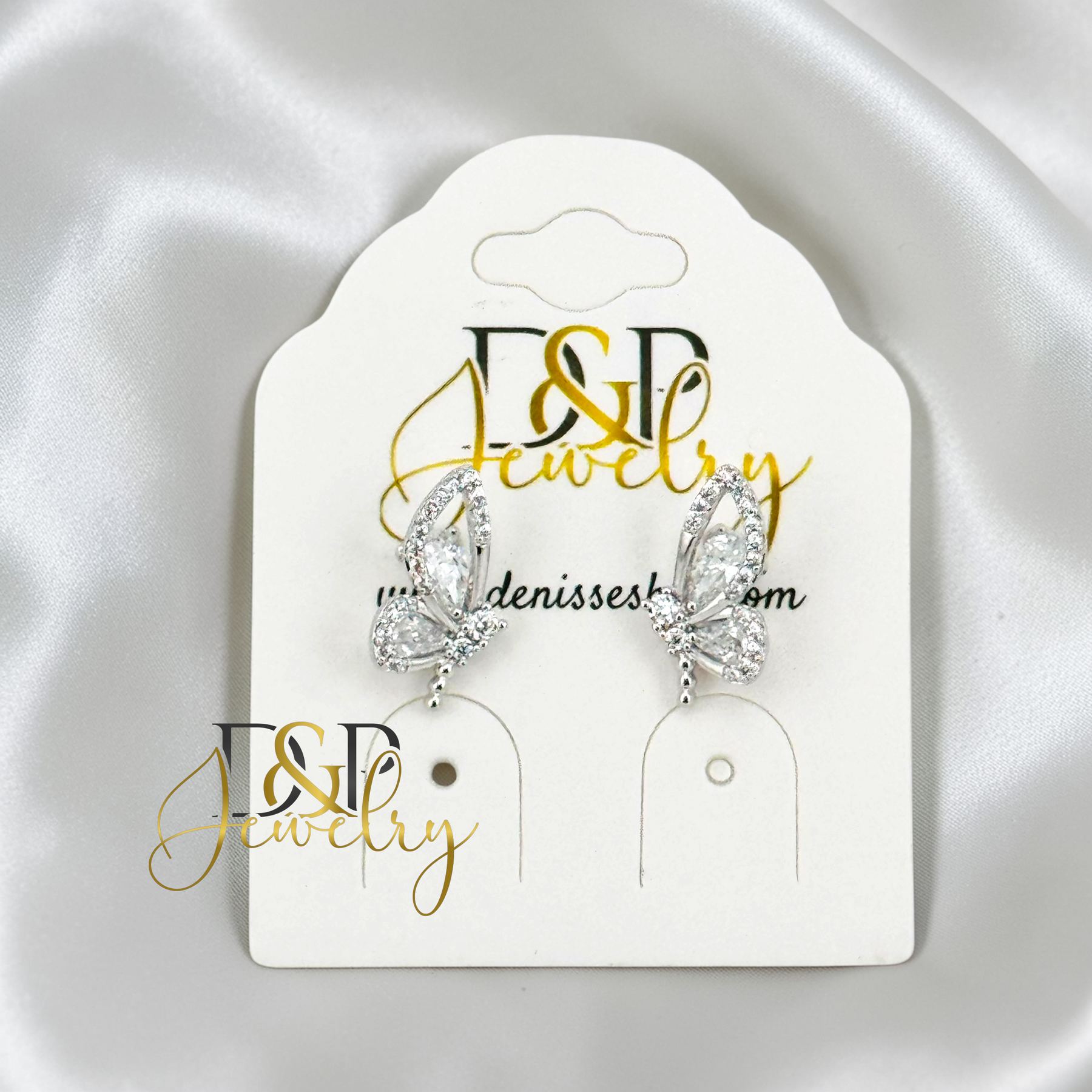 14K SILVER / WHITE BUTTERFLY STUD EARRING E1114