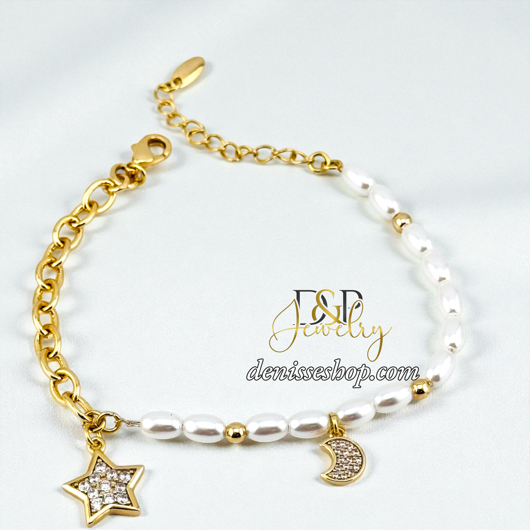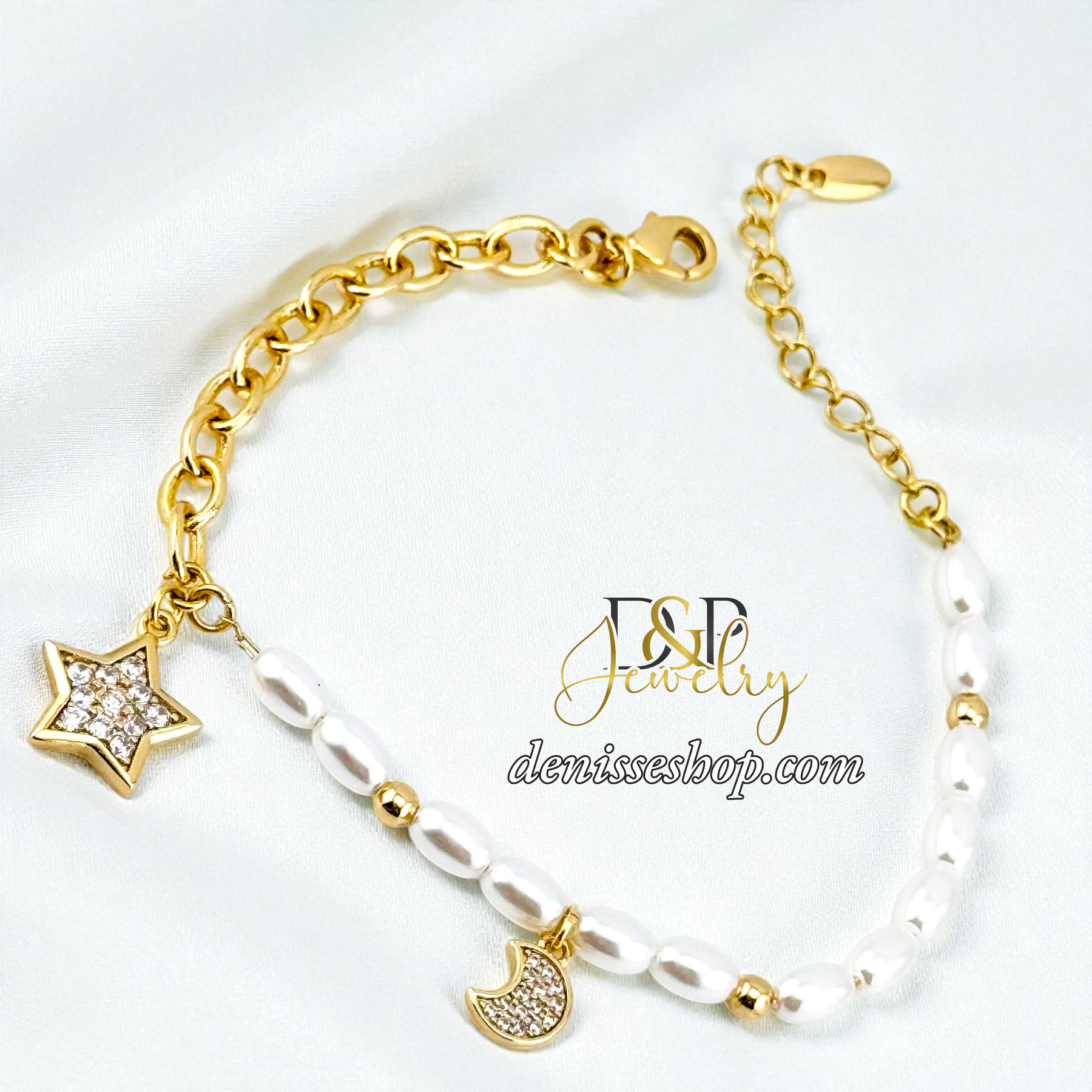 14KGOLD/PEARL STAR/MOON BRACELET BR858