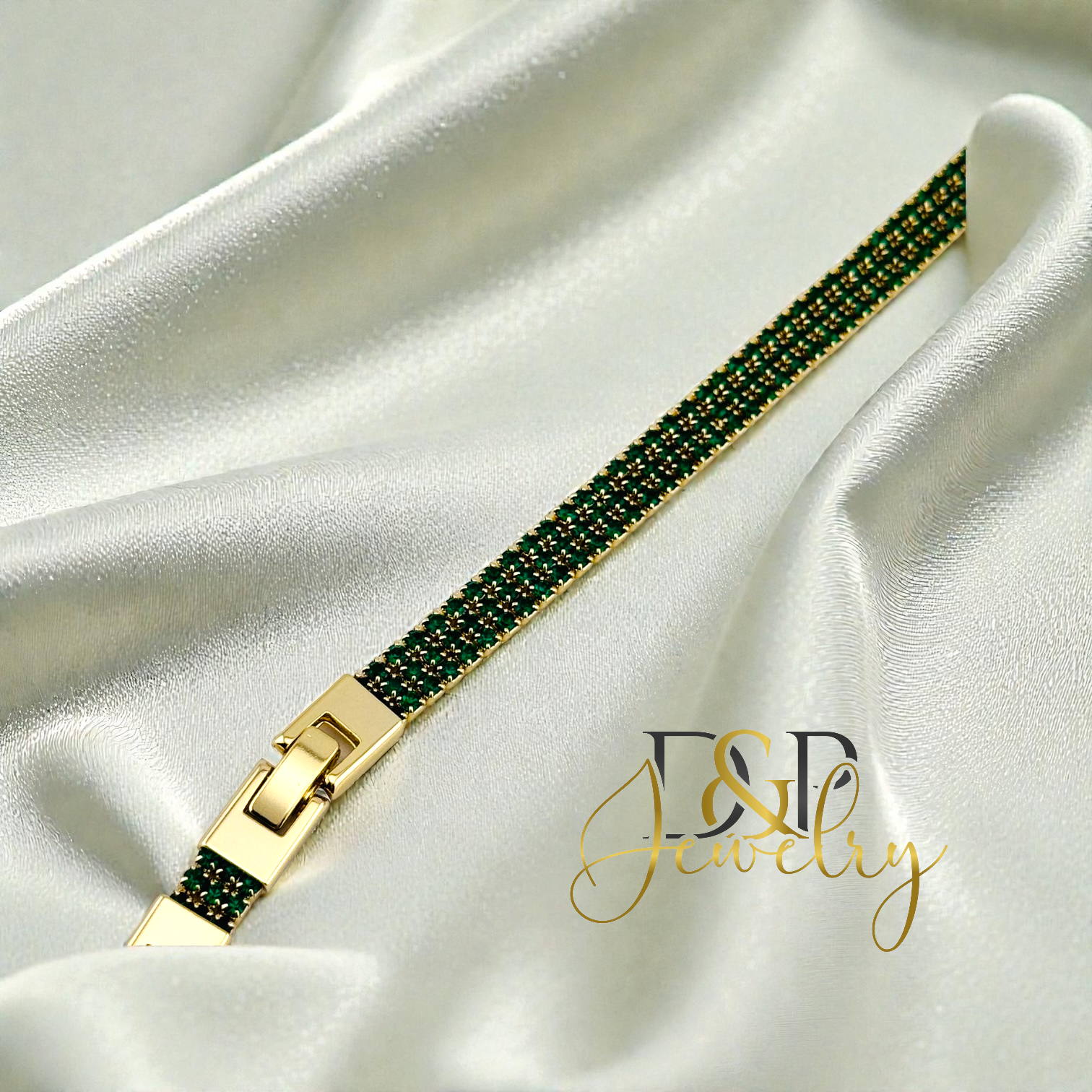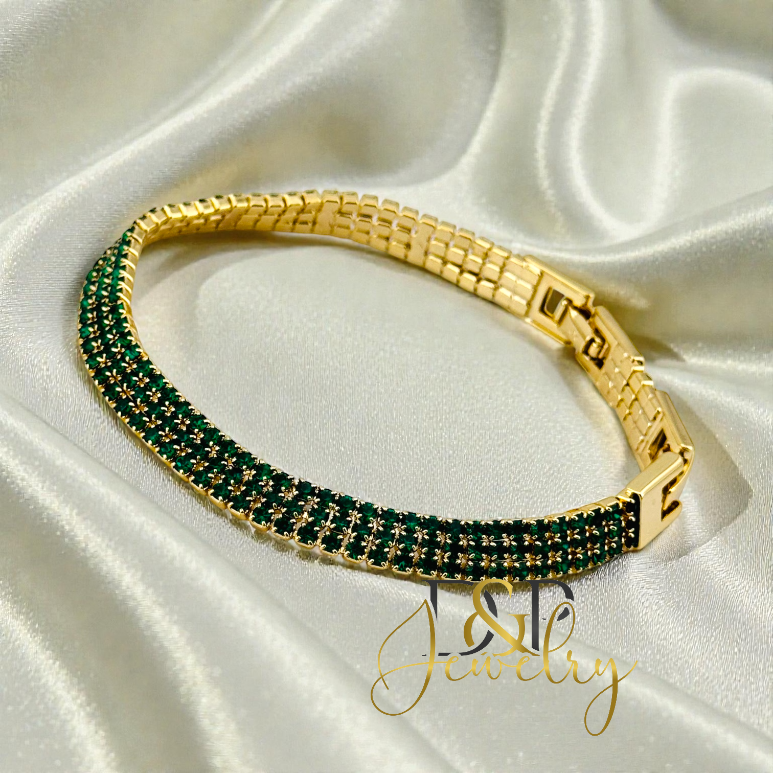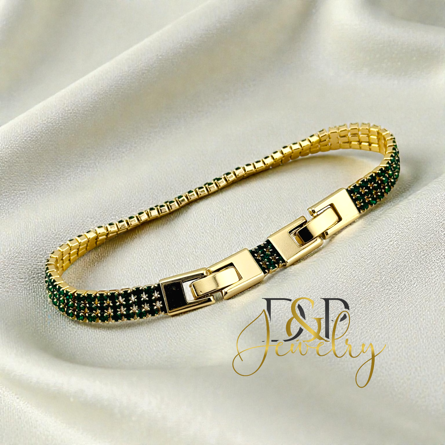 14K GOLD PLATED GREEN FLAT BRACELET BR920