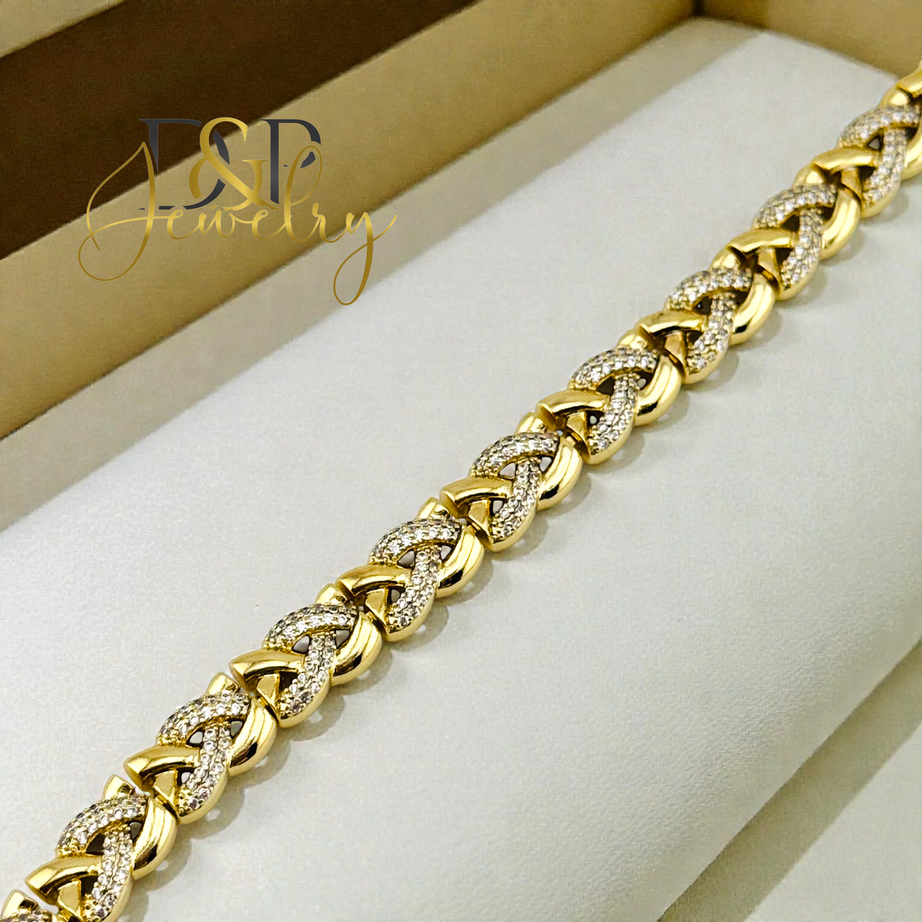 14K GOLD PLATED HALF PLAIN /BLING BRACELET BR928