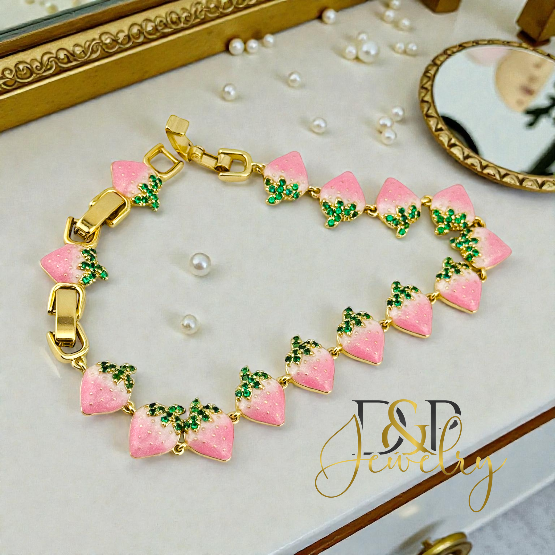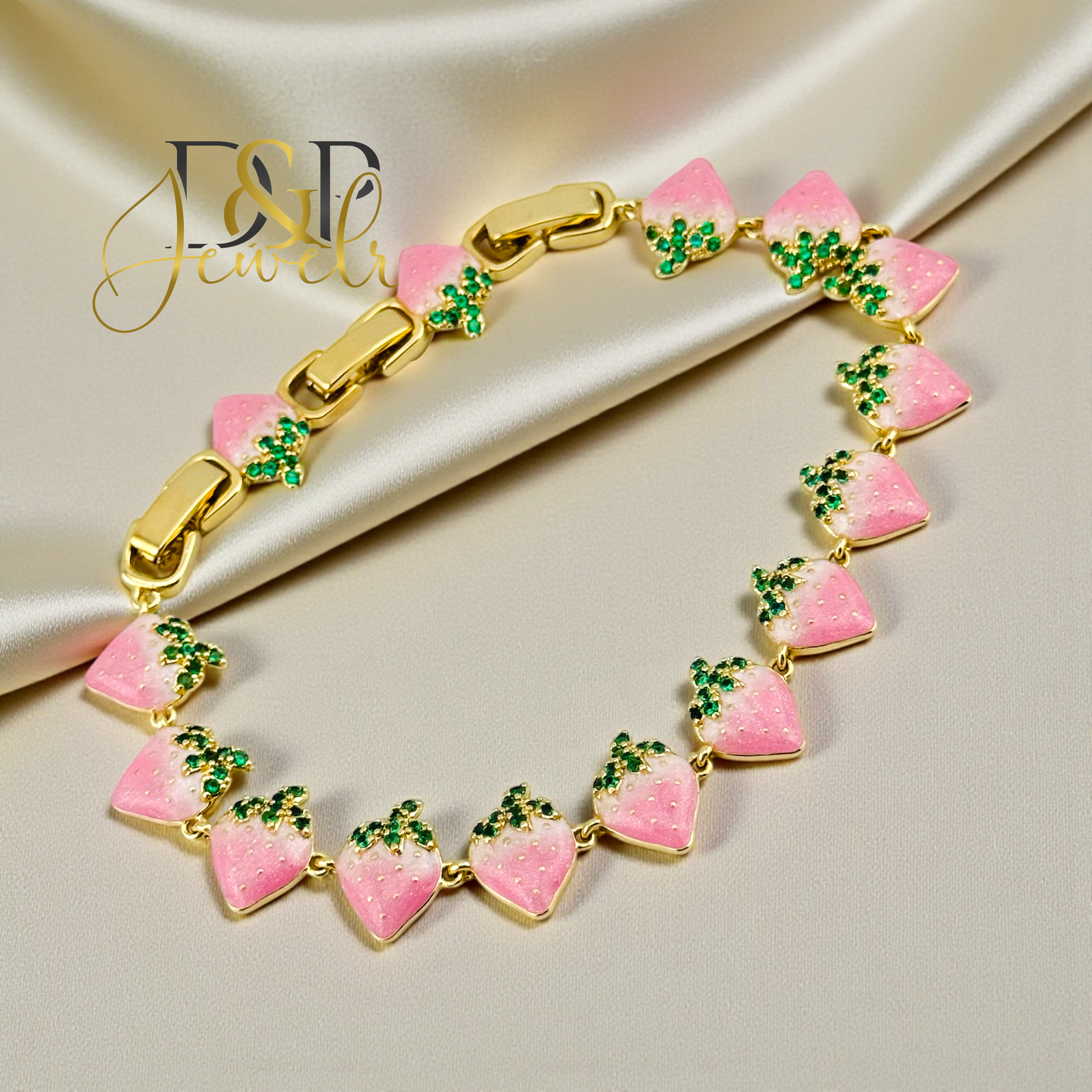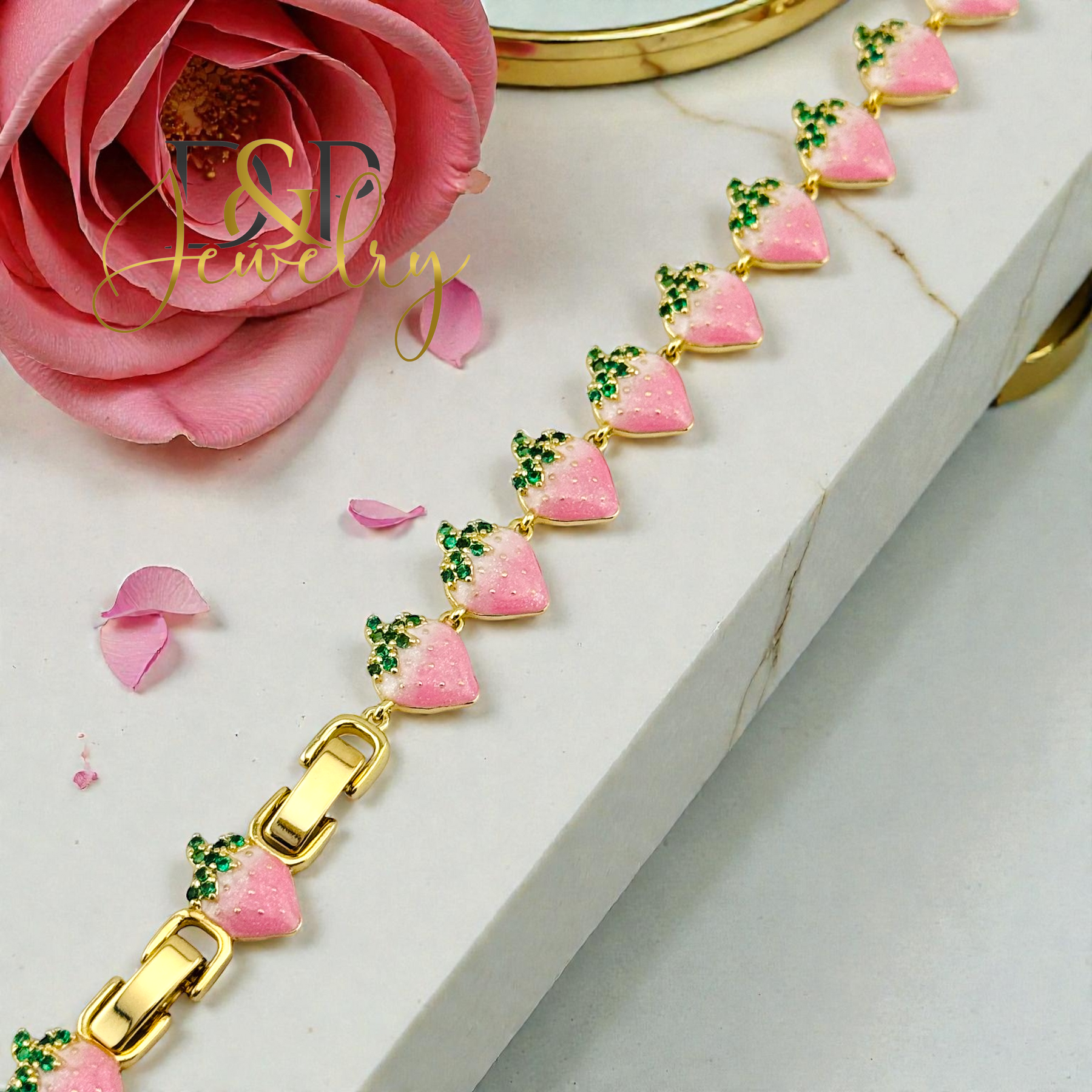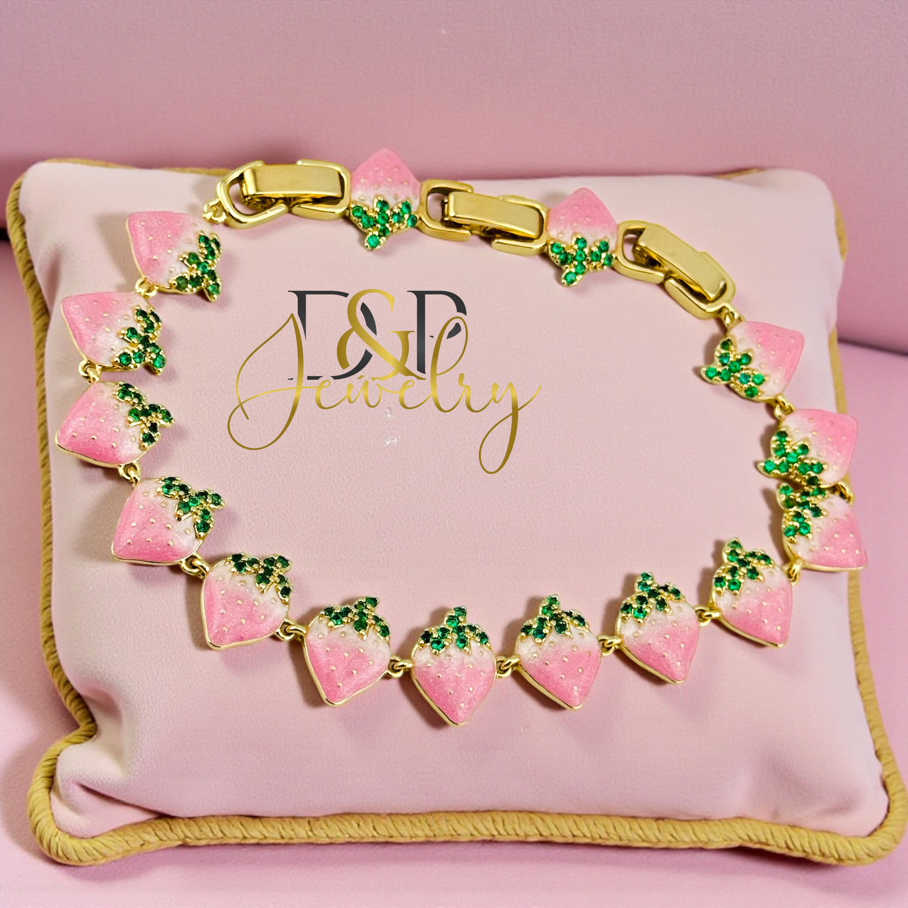 14K GOLD PLATED PINK STRAWBERY LINK BRACELET BR919